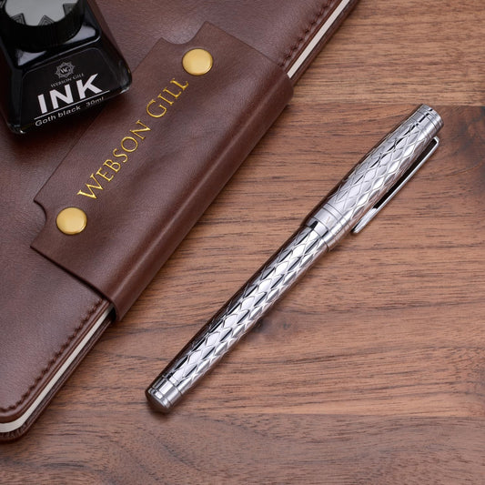 "Mirror" Chrome Luxury Executive Fountain Pen, Ultra Smooth Polished Chrome Silver Accents, Steel Nib, Easy Refill Ink Piston Converter, No Bleed No Smudge, Fits Our Instant Insert Ink Cartridges