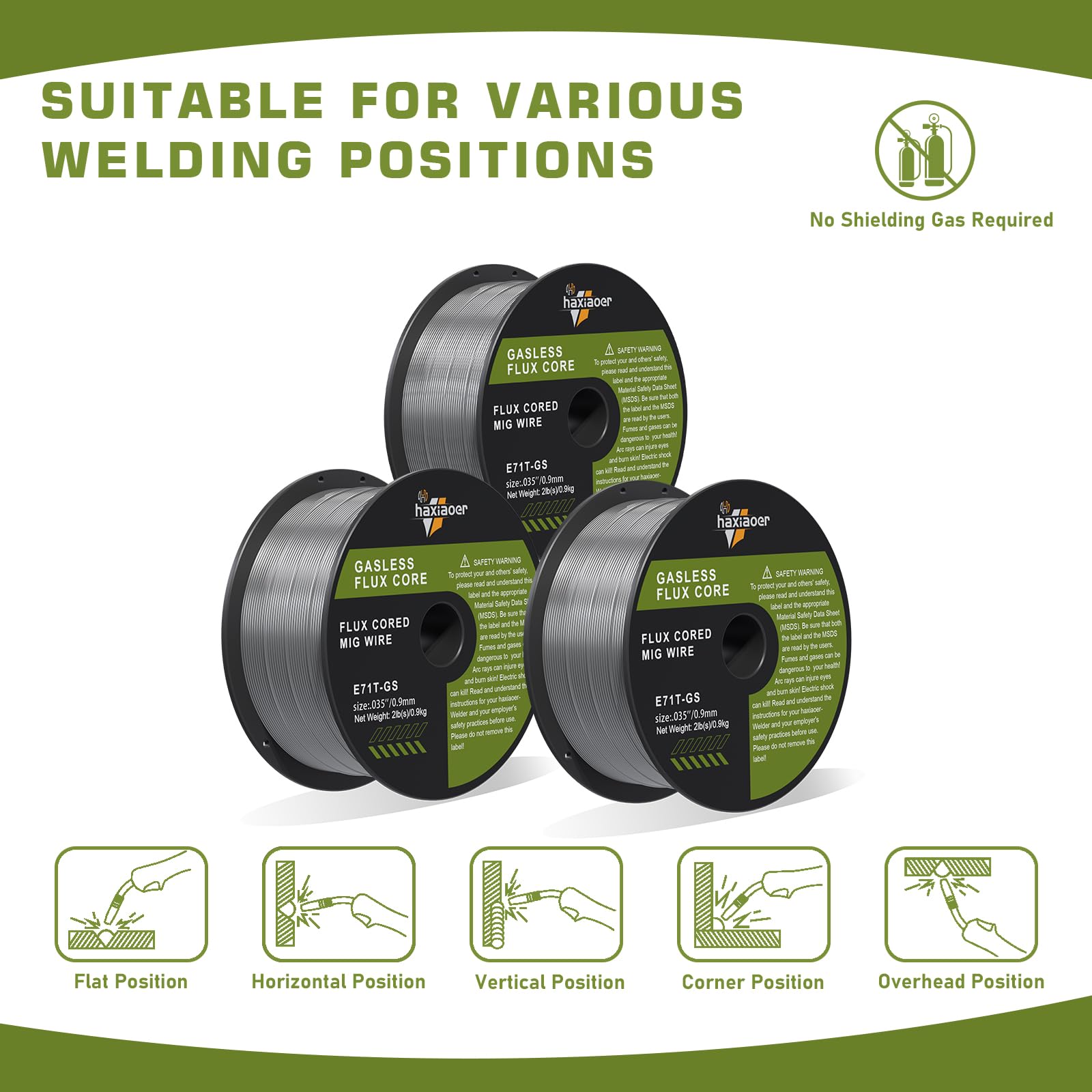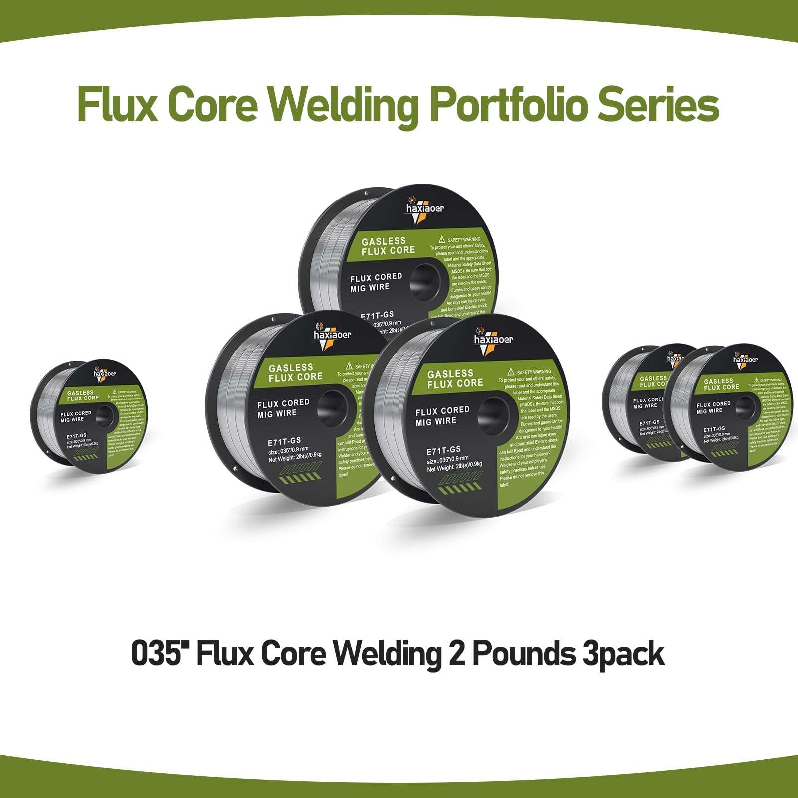 - 【SUPERIOR WELDING PERFORMANCE】: haxiaoer .035'' Flux Core 3pack MIG Welding Wire offers smooth arc action and high feedability, making welding a breeze. Perfect for outdoor windy conditions, this gasless flux cored welding wire requires no shielding gas, allowing for all-positions, single and multi-pass welding etc.