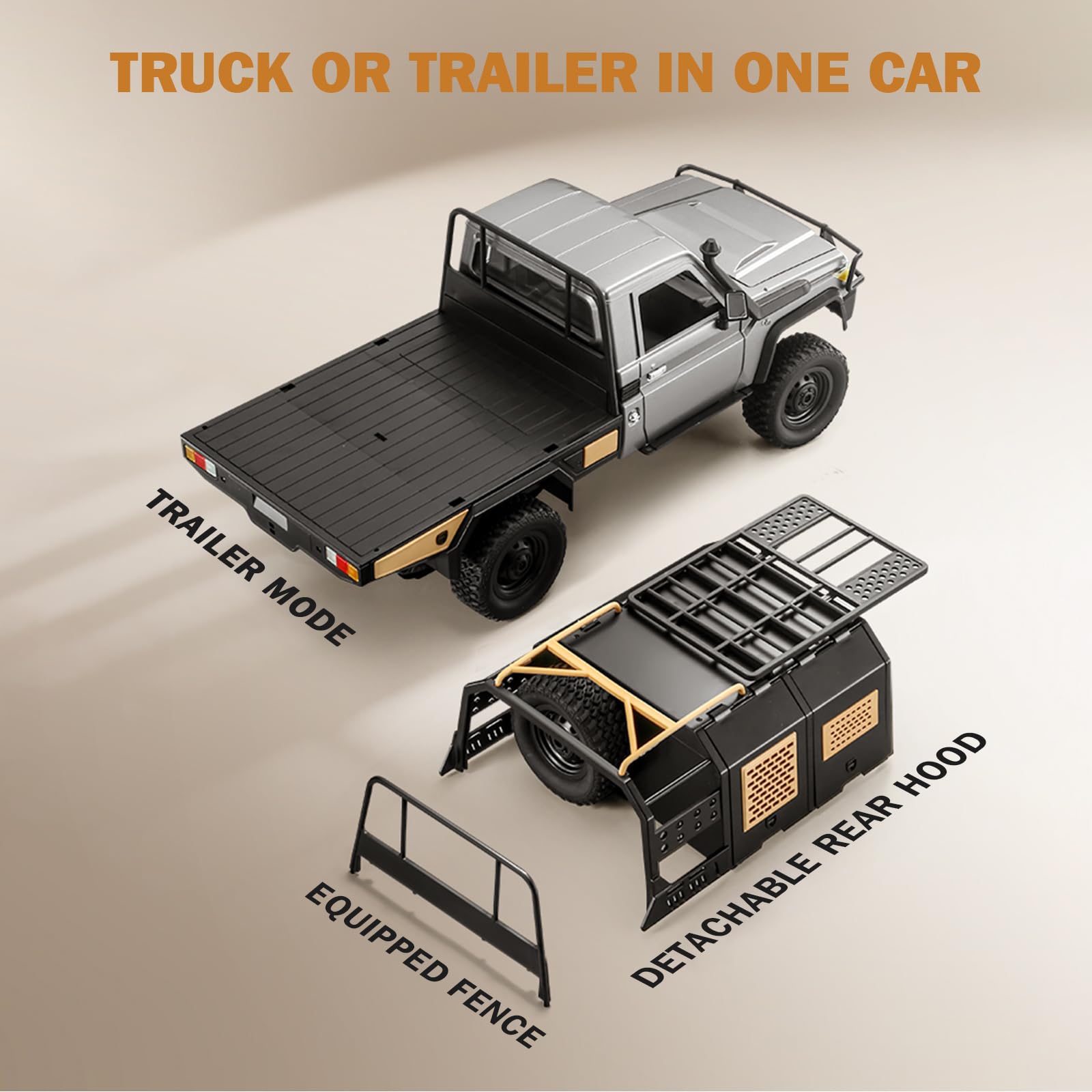 - โ ๐๐จ๐ฆ๐ง๐ข๐ ๐๐ญ๐๐๐๐ & ๐๐จ๐๐-๐ฆ๐ฃ๐๐๐ ๐๐ข๐ก๐ง๐ฅ๐ข๐ - The MN-82S lets you upgrade components like the motor and suspension for a personalized RC experience. Its detachable rear hood allows it to switch between a pickup truck and trailer. A metal splash-proof steering servo enables easy high and low-speed gear shifting for versatile off-road action.