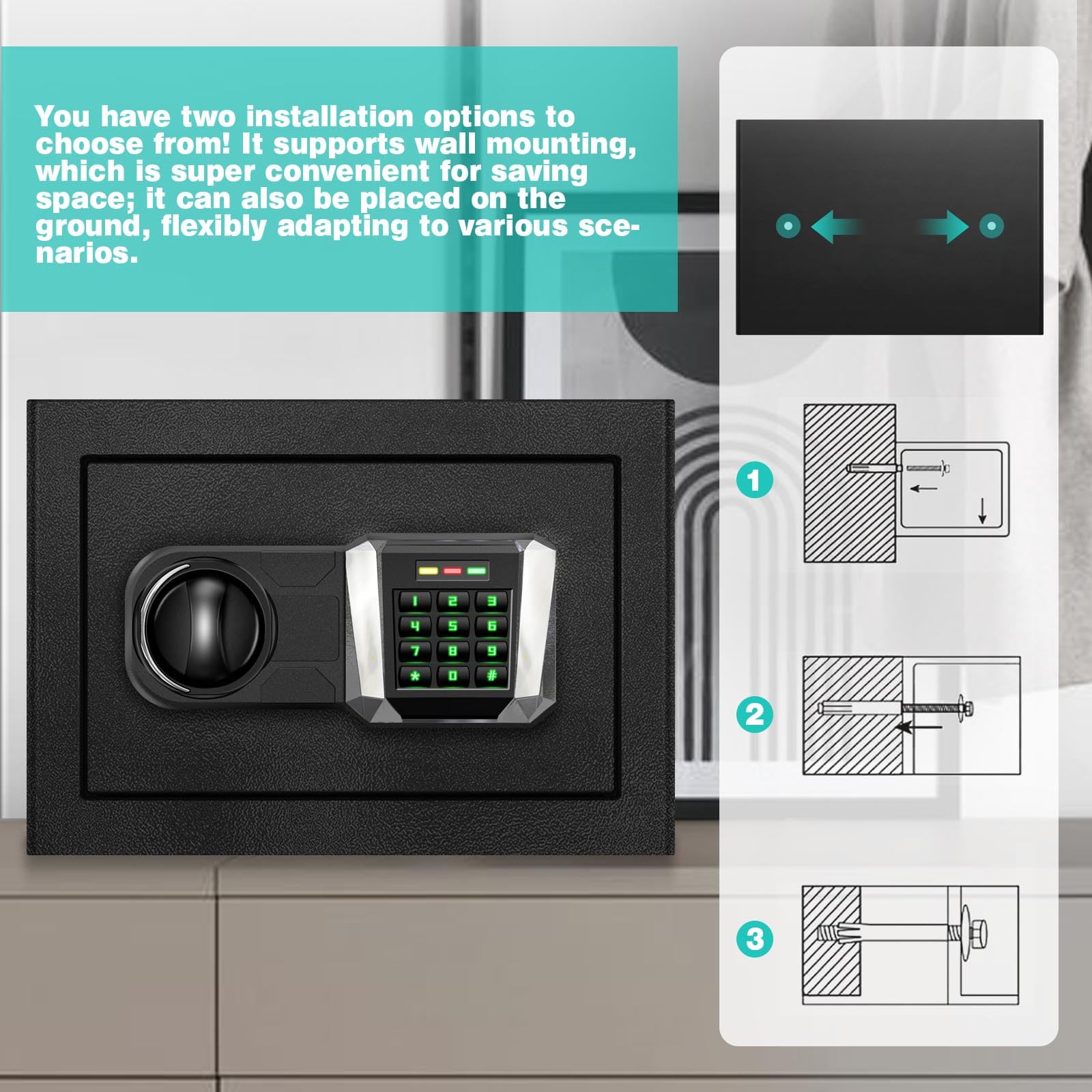 - 【PROTECTS VALUABLES】: Our professional electronic safe lock box offer exceptional protection for your jewelry, gold, cash, money, pistols, documents, and more. Its robust design and premium materials make it an ideal choice for both home and office environments, ensuring your valuables are safe and secure