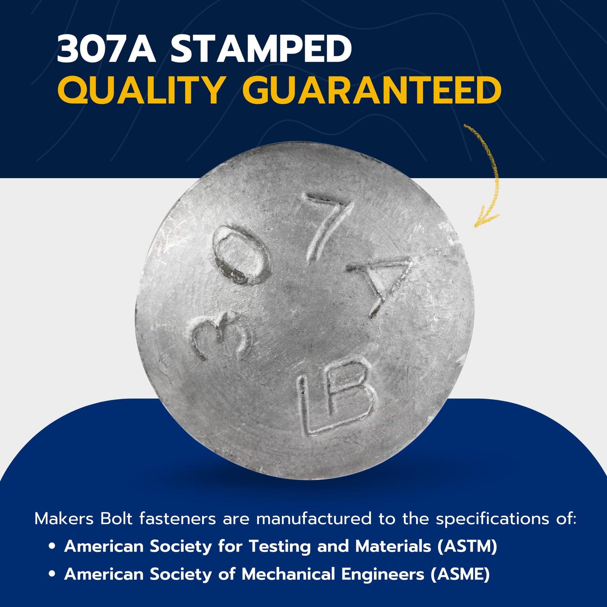 1/2" x 3" (25 Pack) Galvanized Carriage Bolt Kit Grade 307A Includes 1/2" USS Flat Washers (25 pcs) and 1/2"-13 Hex Nuts (25 pcs), Hot Dip Galvanized for Exterior Use by Makers Bolt