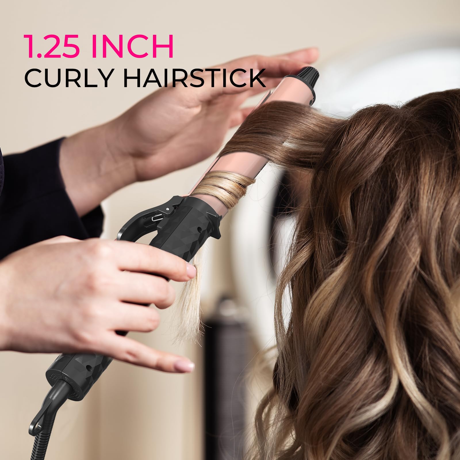 1.25 Inch MCH Ceramic Curling Iron with 6.2-Inch Barrel, Adjustable Temperature, LED Display, and Dual Voltage for Long Hair - Professional Curling Wand with Instant Heat up to 450°F