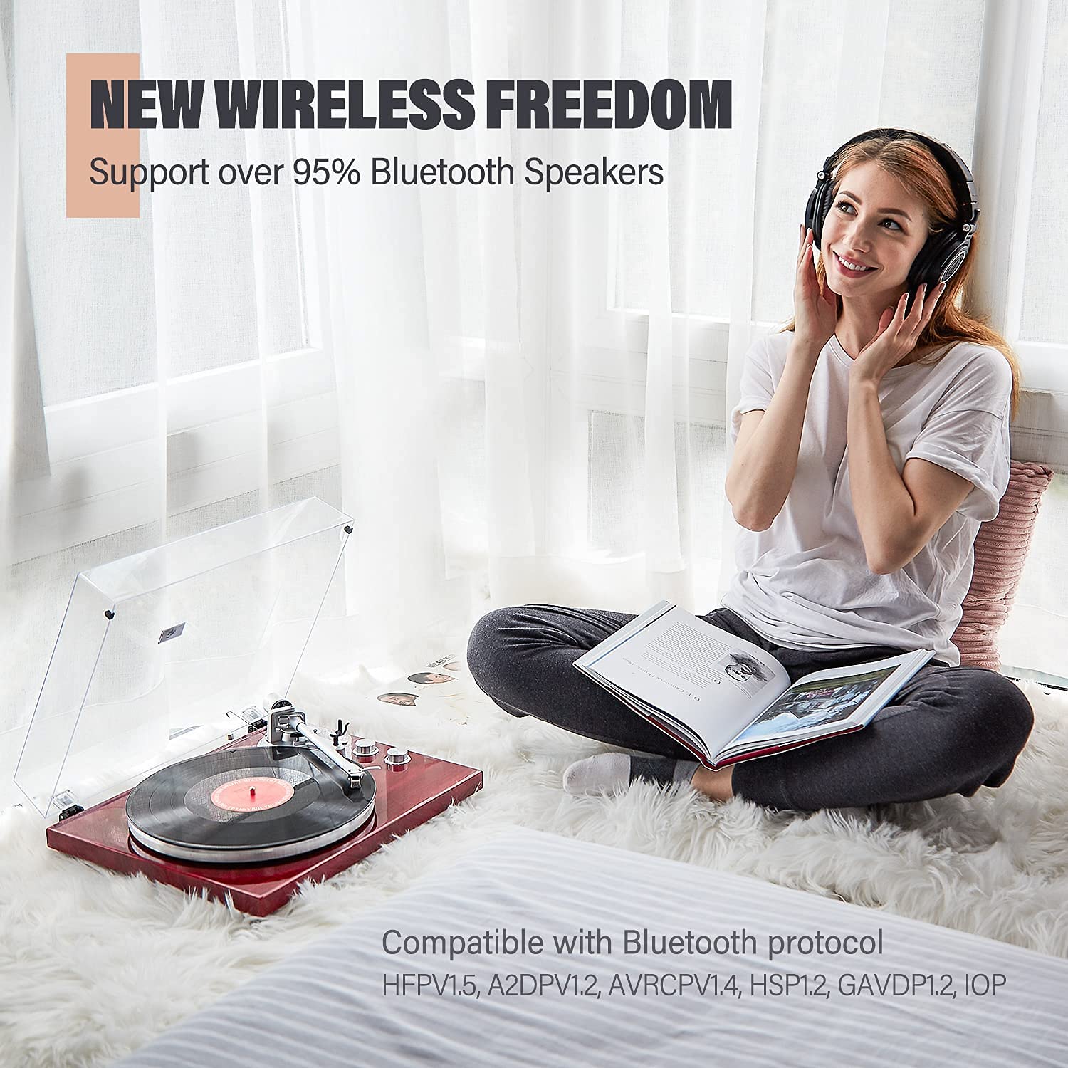 - Note: Some Bluetooth speakers may not be connected properly, as this turntable is compatible with Bluetooth protocol HFPV1.5, A2DPV1.2, AVRCPV1.4, HSP1.2, GAVDP1.2, IOP