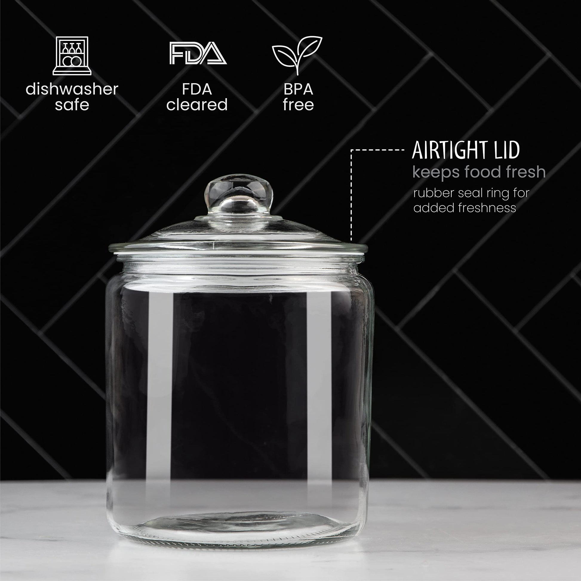 1 Gallon Glass Cookie Jar - Large Food Storage Container with Airtight Lid - Keep Fresh Flour, Chewy Pet Treats, Candy, Dried Foods, Detergent Pods for Your Kitchen or Laundry Room- Pack of 2