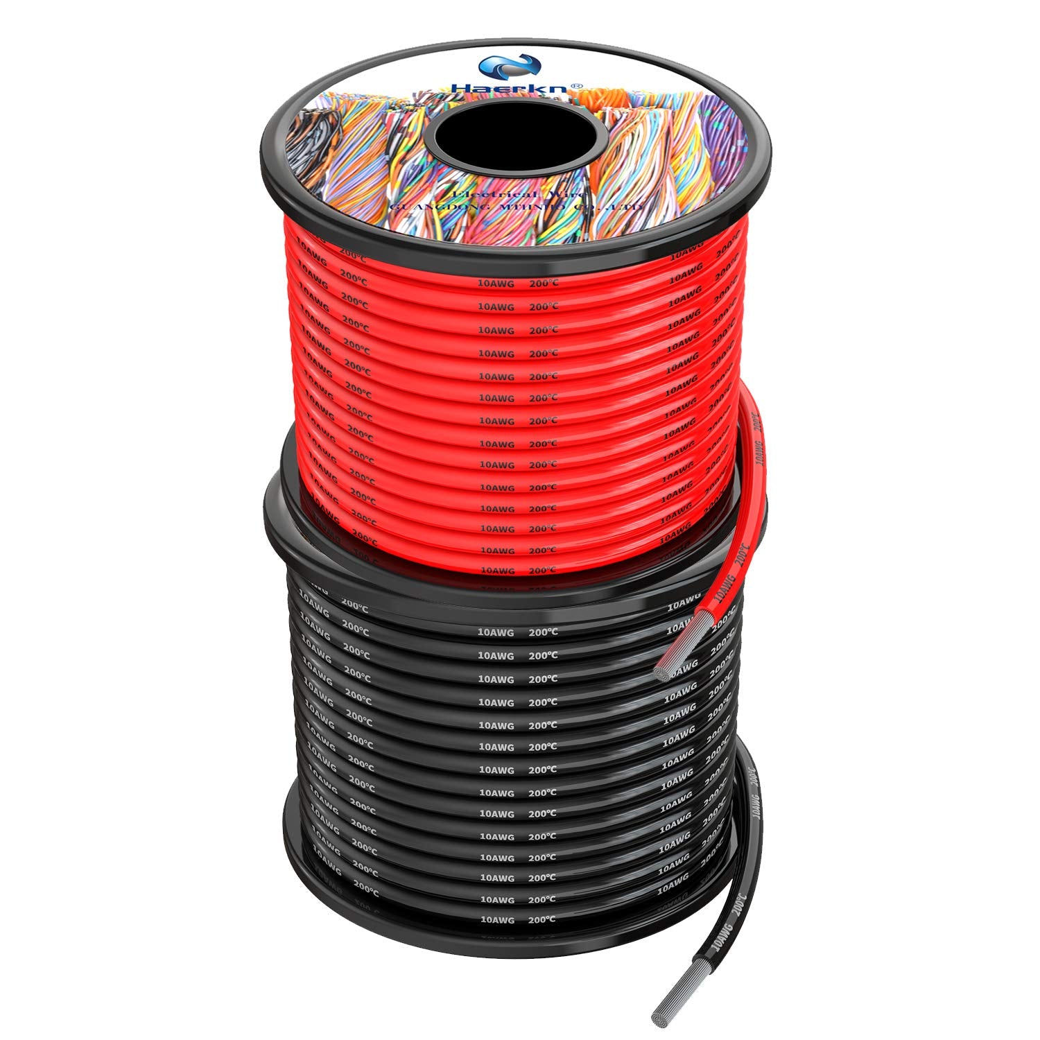 10 awg 5.2mm² Silicone Electrical Wire Cables 50 Feet [25ft Black and 25ft Red] 10 Gauge 600V Soft and Flexible Hook Up Oxygen Free Stranded Tinned Copper Wire Model Battery Cable