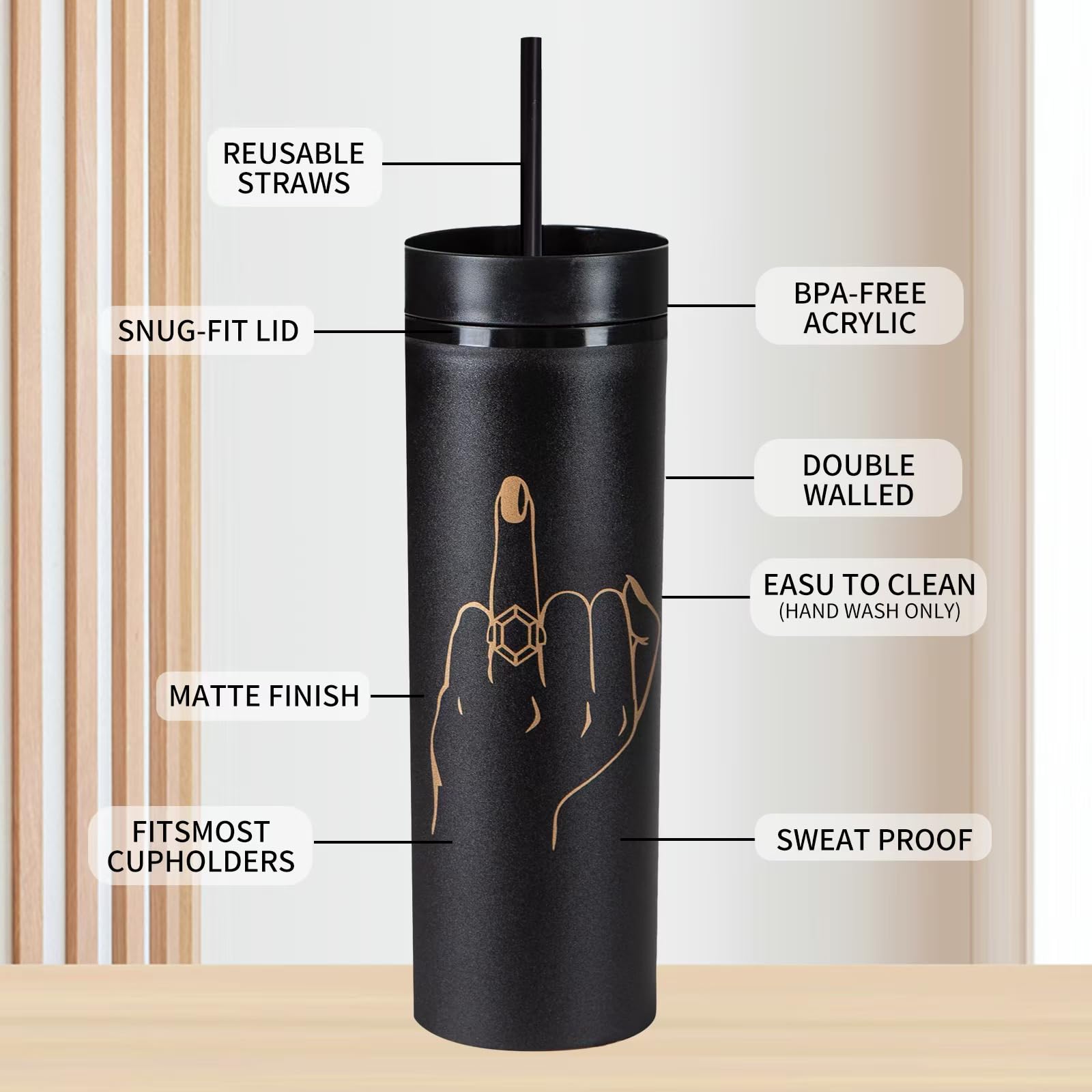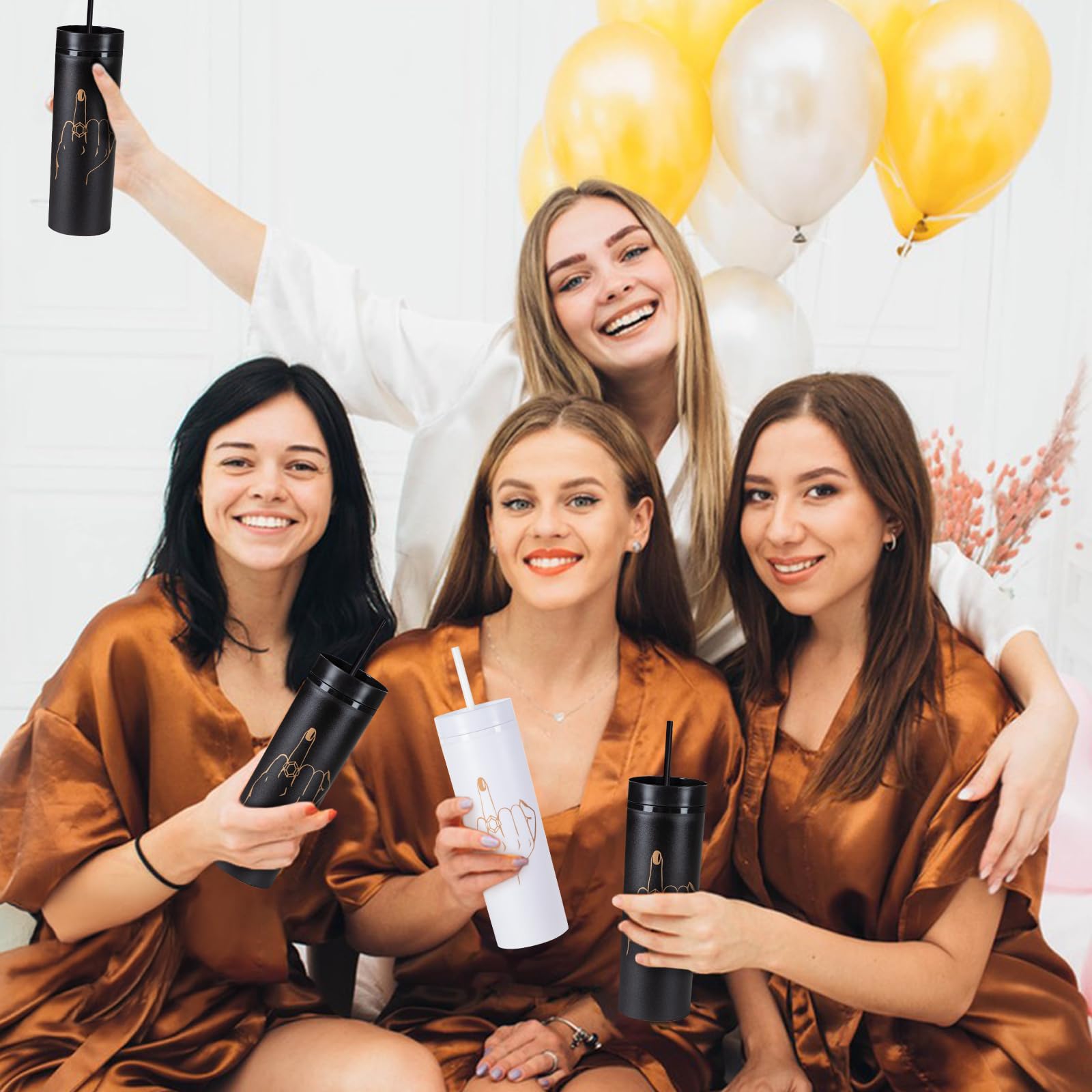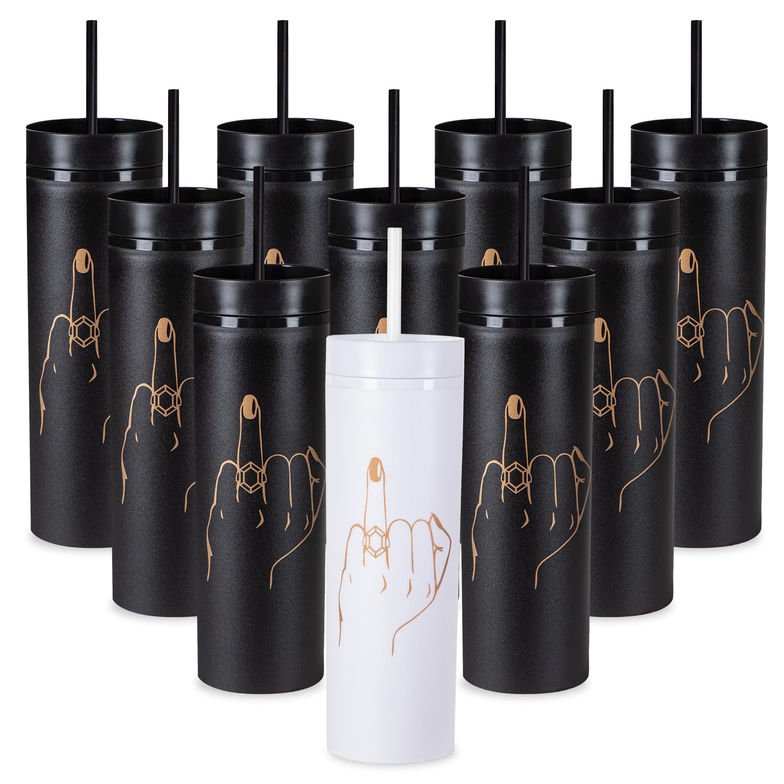 - Bachelorette Party Gifts: designed for bachelorette parties, bridesmaids and brides, you will receive 10 skinny tumblers with lids and straws , including 1 white ring finger tumbler and 9 black ring finger tumblers to celebrate, which are ideal bachelorette party bridal gifts