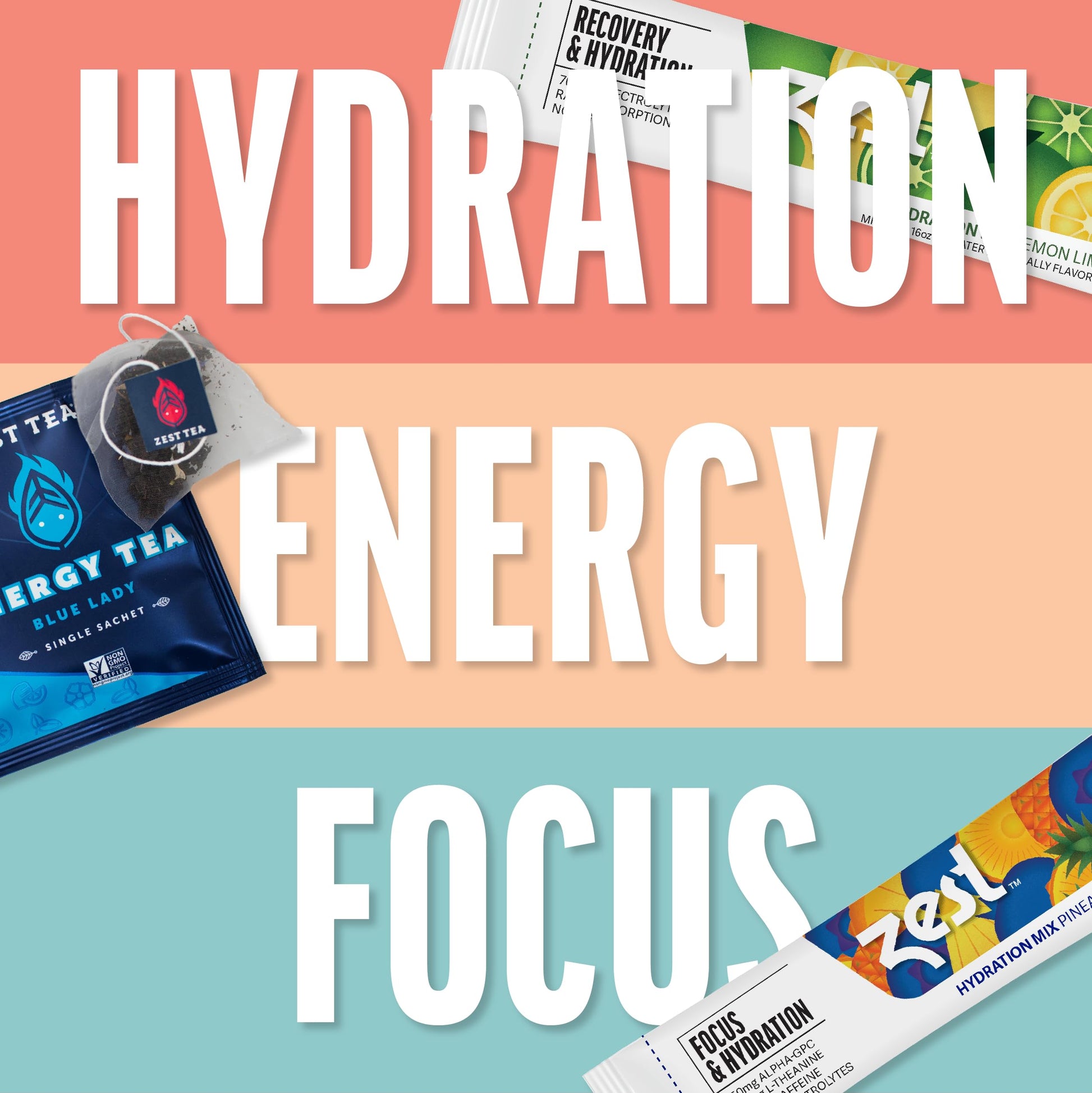 - HYDRATION & ENERGY BOOSTS: Replenish on electrolytes and boost your energy levels with two types of Zest Hydration Powder Sticks & one Zest Energy tea bag.