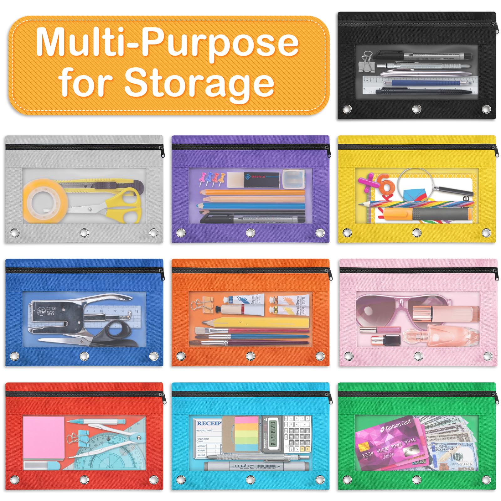 - GREAT ORGANIZER 3 RING PENCIL POUCH: These binder pouches are perfect for organizing, suitable for categorizing various supplies or documents for different purposes for different groups of people. These 3 ring binder pouch is very practical for storing school learning supplies, office supplies, document files, etc.