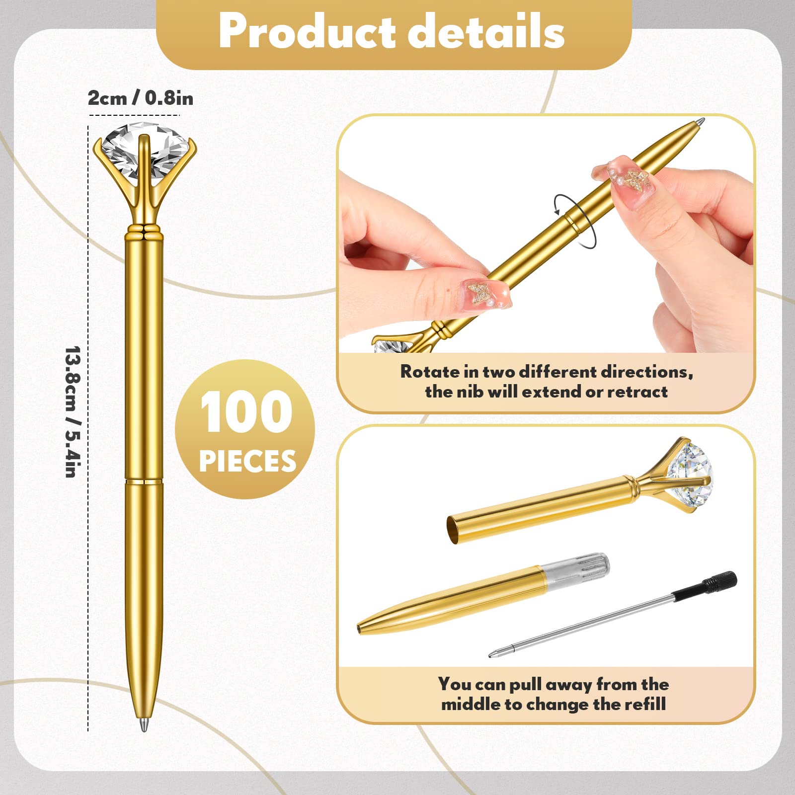 - You Will Receive: there are 100 large gold diamond pens in the package, enough quantity to meet your daily writing needs and can suit most people's tastes, so that you don't need to buy ballpoint pen too often