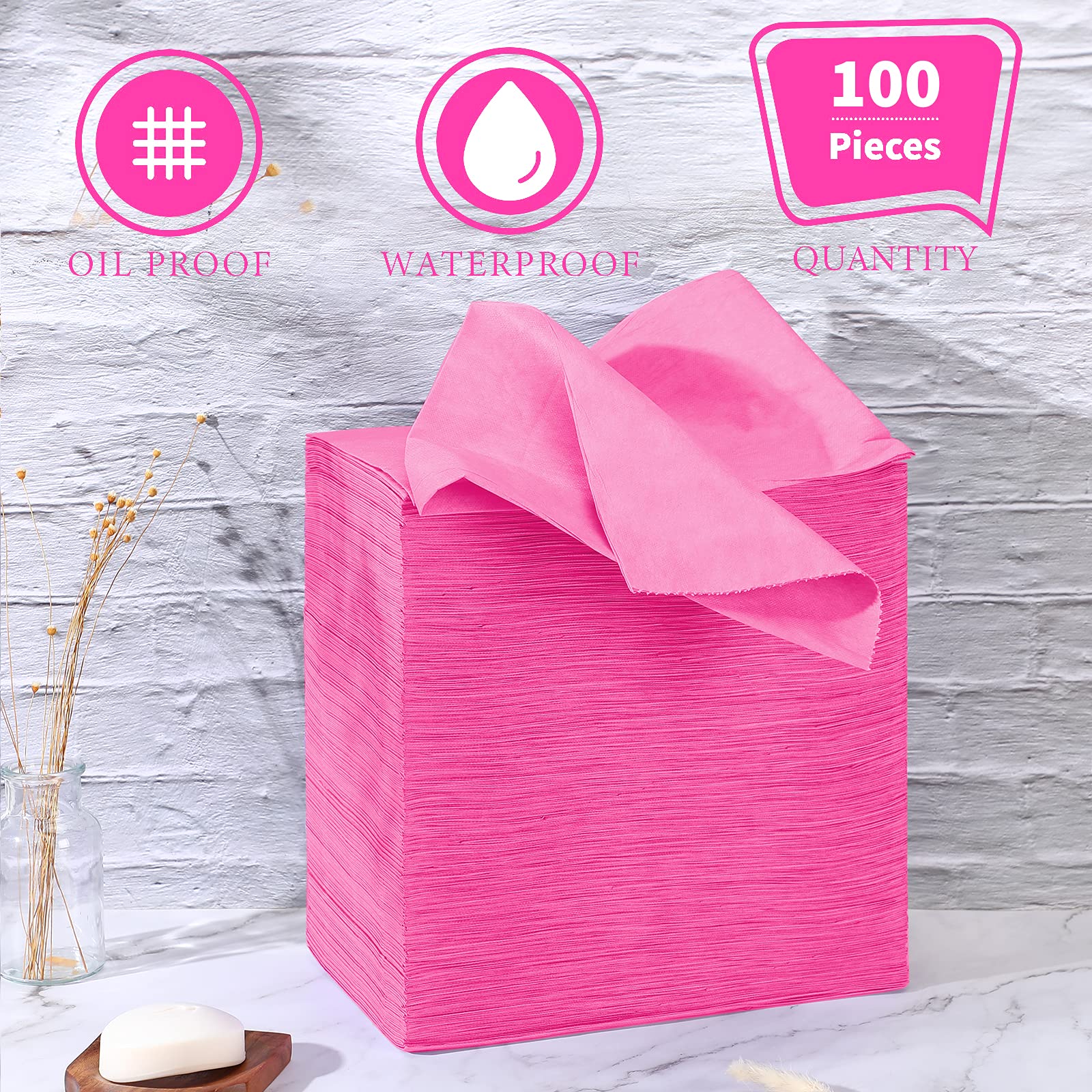 100 Pieces Disposable Bed Sheets Non-woven Spa Fabric Sheets Waterproof Massage Table Sheets Oil Proof Bed Cover for Travel Spa Tatto Hotel Salon, 31.5 x 71 Inch (Pink)