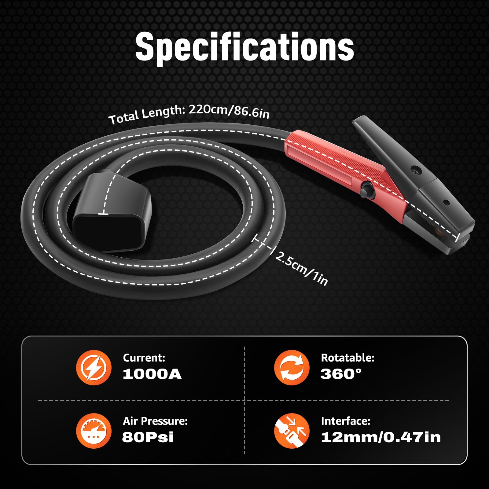 Flexible Tube: The air gouging gun line has excellent flexibility and a 1-inch diameter, which can easily adapt to various work needs. Its length (86.6in) provides convenience for operation while meeting the needs of various application scenarios.