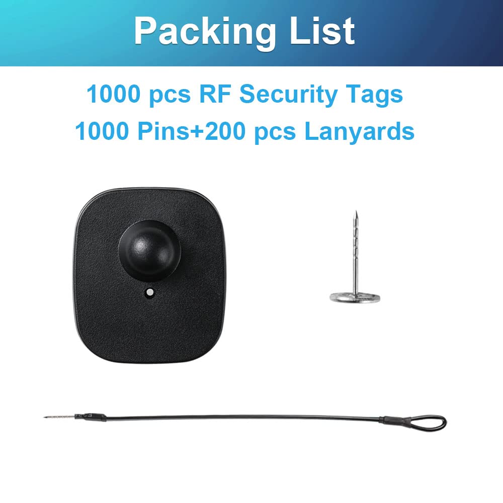 1000Pcs 8.2Mhz RF Security Clothing Tags Black Retails EAS Clothes Tag with 1000 Pins and 200 Lanyards
