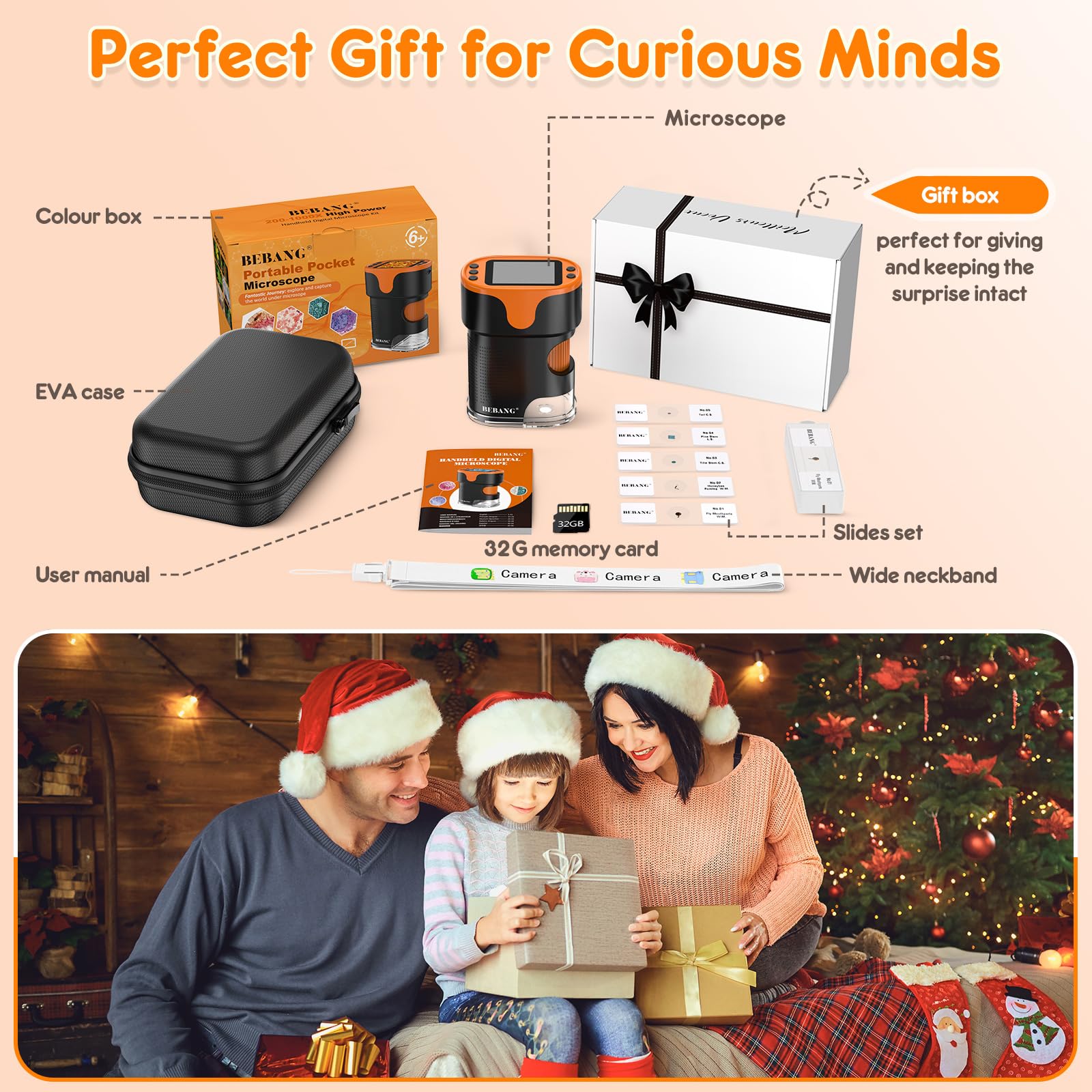 1000X Handheld Microscope for Kids 4K 2.0" Screen Rechargeable Mini Pocket Digital Microscopes w/Slides Kit Portable Edu Gift Age 4-6 8-12 Children Students