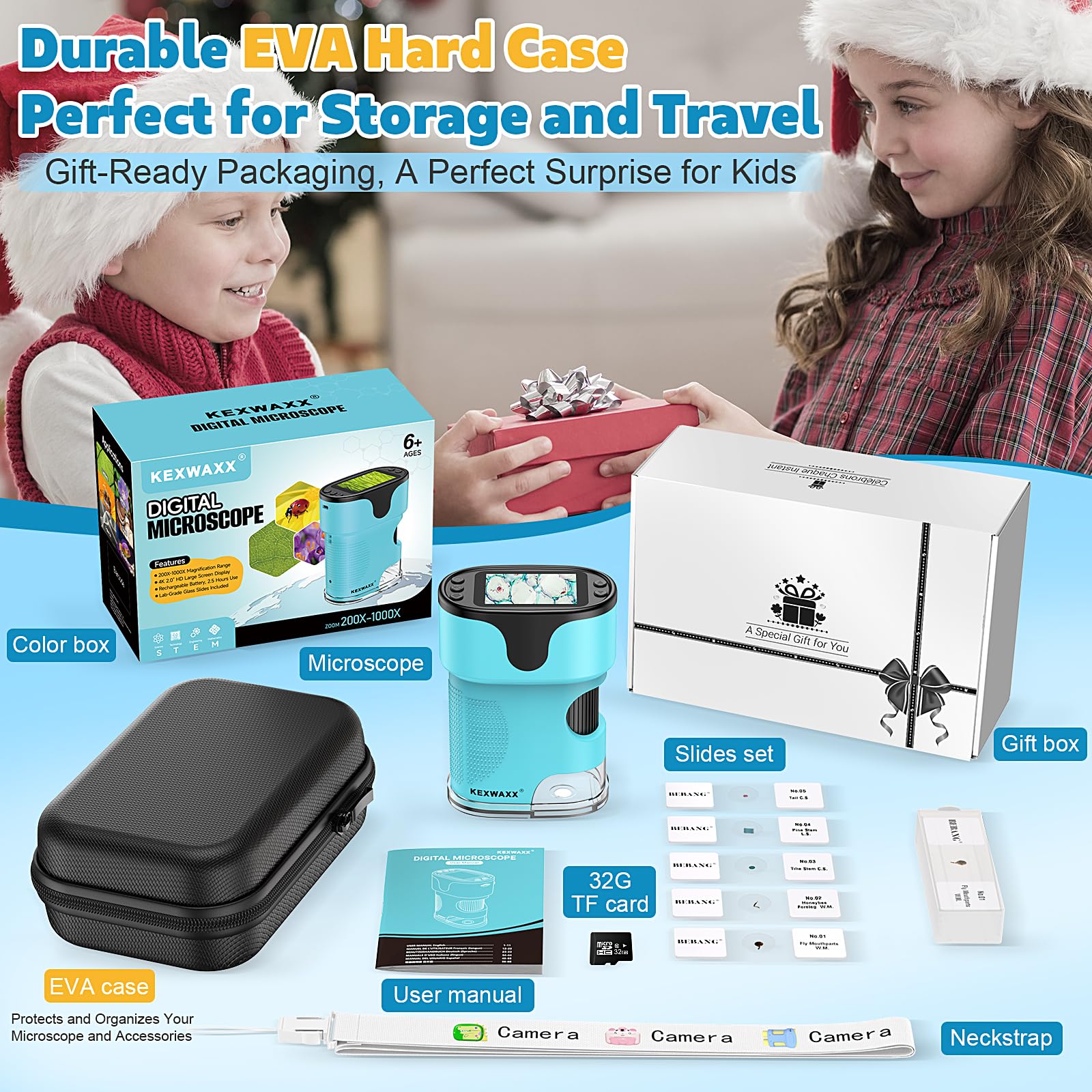 1000X Pocket Microscope for Kids - 4K 2.0" Screen, Digital Mini Scope with Slides Kit, Rechargeable Lab Handheld Portable Microscopes for Kids 4-12 Students Teens