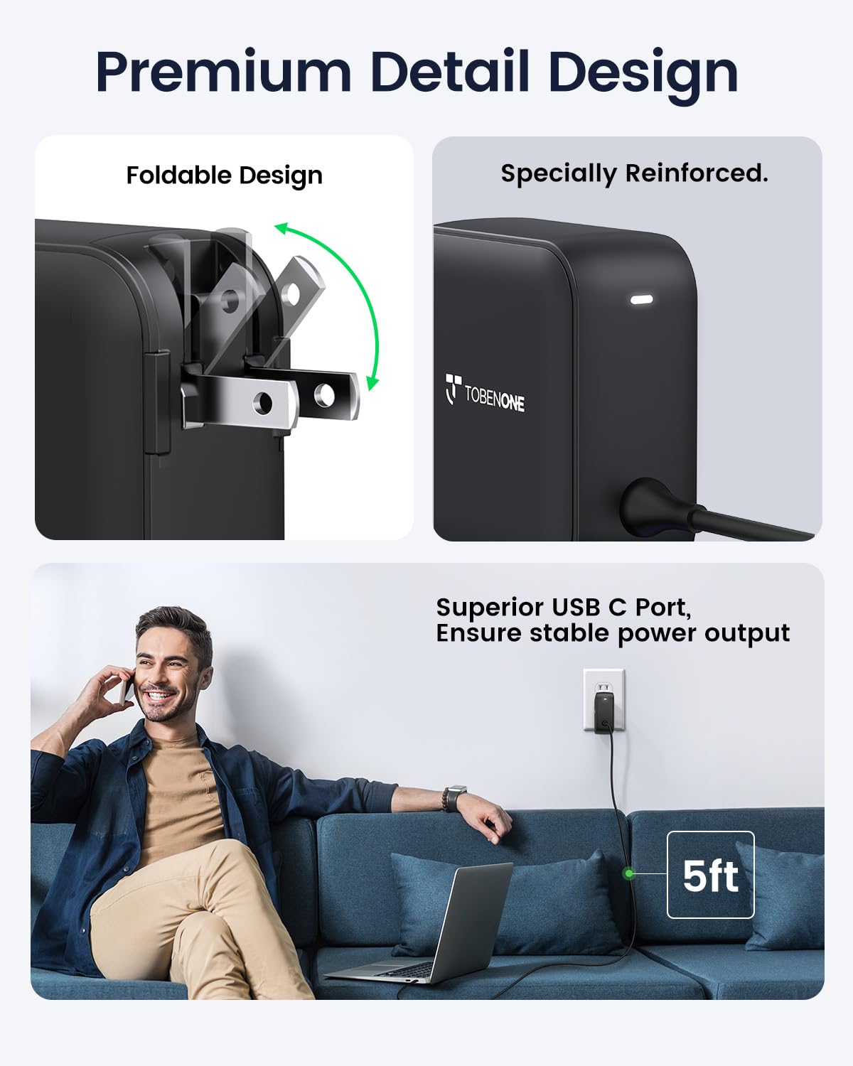 100W USB C Laptop Charger, Universal GaN III Power Supply Adapter, Replacement Foldable Fast Charger PD3.0 for MacBook Pro/Air, HP, Lenovo, Asus, Steam Deck, and All Type C Devices (5ft Cable)