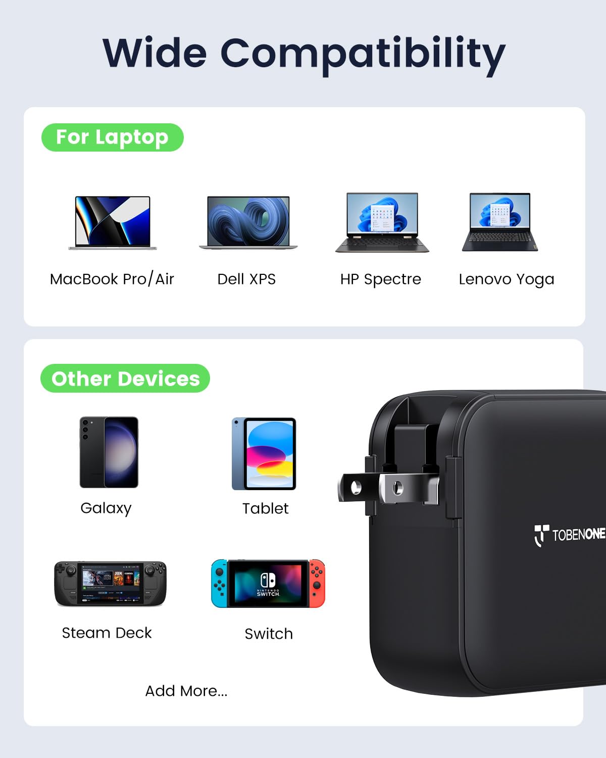 - Widely Compatibility: This universal laptop charger is specially designed for charging your USB C Devices, Compatible with MacBook Air/Pro, Dell Latitude, Dell XPS, HP Spectre, Chromebook, Lenovo Yoga, ThinkPad, Steam Deck, Tablets, Smartphones, Smartwatches, and other devices with type C port