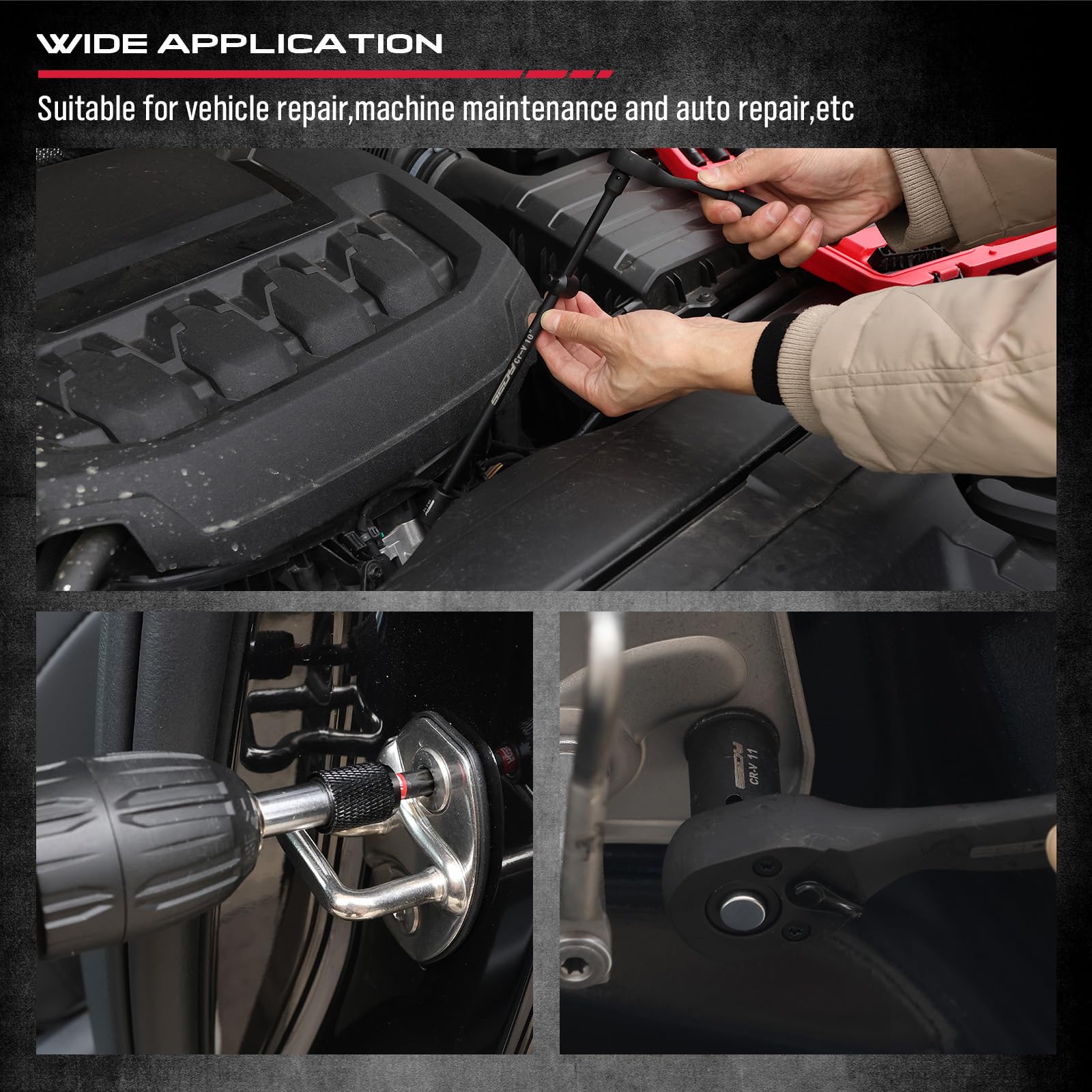 - VERSATILE PERFORMANCE — Perfect for mechanics, DIY enthusiasts, and automotive repair, this set includes all the tools you need for various tasks. Whether you’re working on your car, bike, or household repairs, this comprehensive set ensures you’re always ready to tackle the job