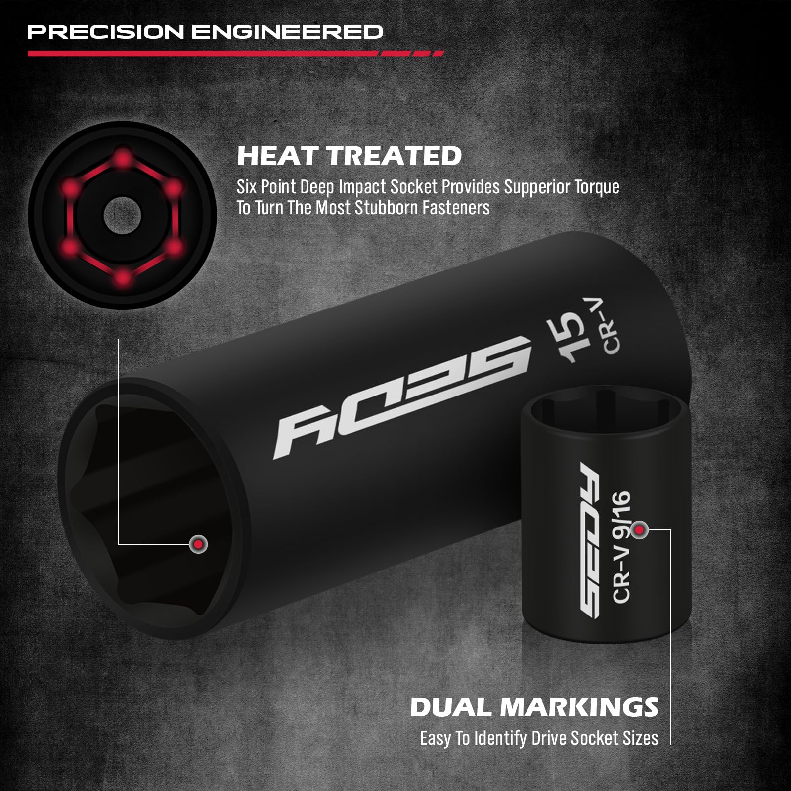 - PRECISE FIT & EASY IDENTIFICATION — Each socket features laser-etched size markings for quick identification. The 6-point socket design provides a secure grip, reducing wear and preventing damage to fasteners