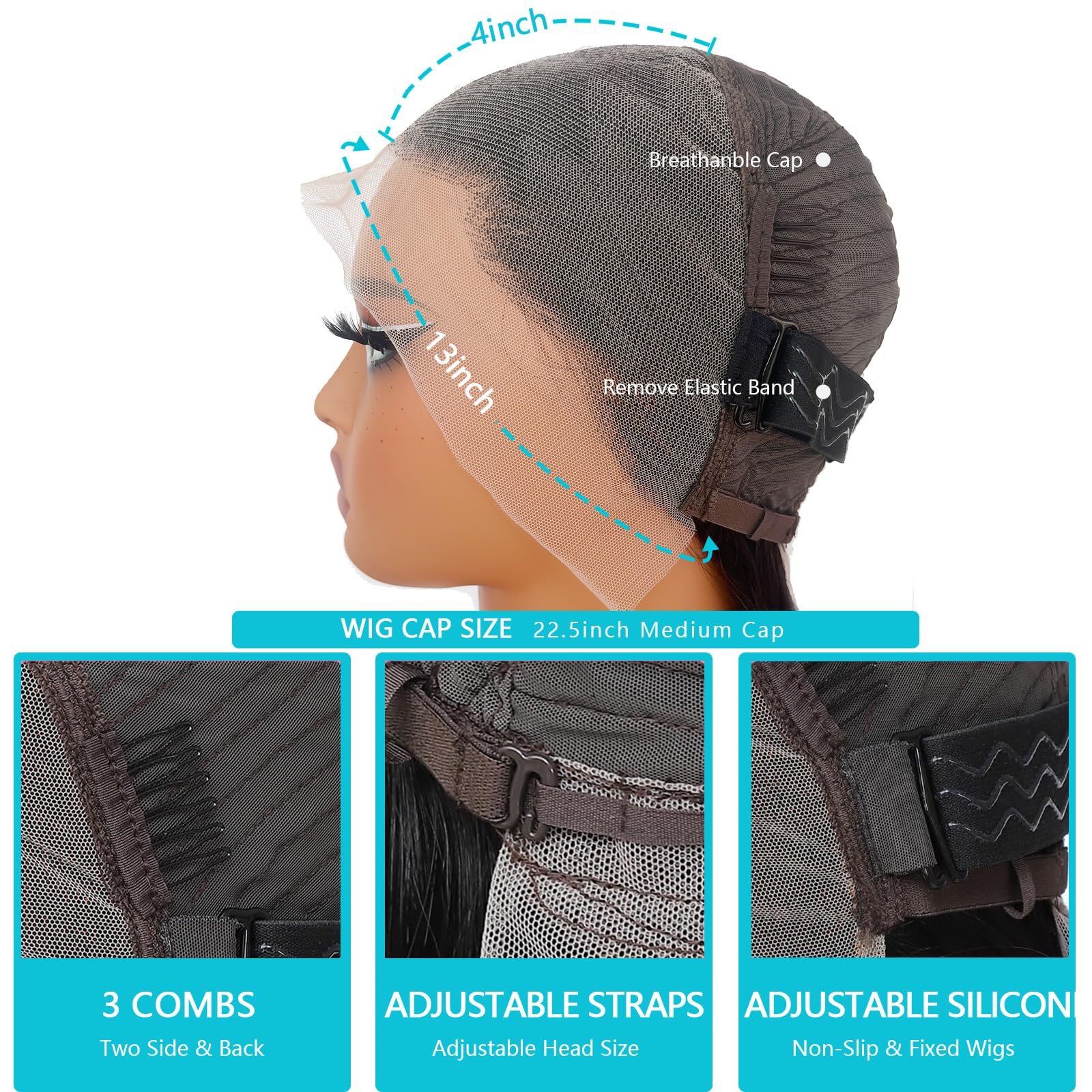 - 【13x4 Bob Wig Cap Size】(21.5Inch - 22.5Inch) with 3 Combs and Adjustable Straps, Easy to Adjust, It Can Help You Fixed on Your Head,More Easy to Wear.