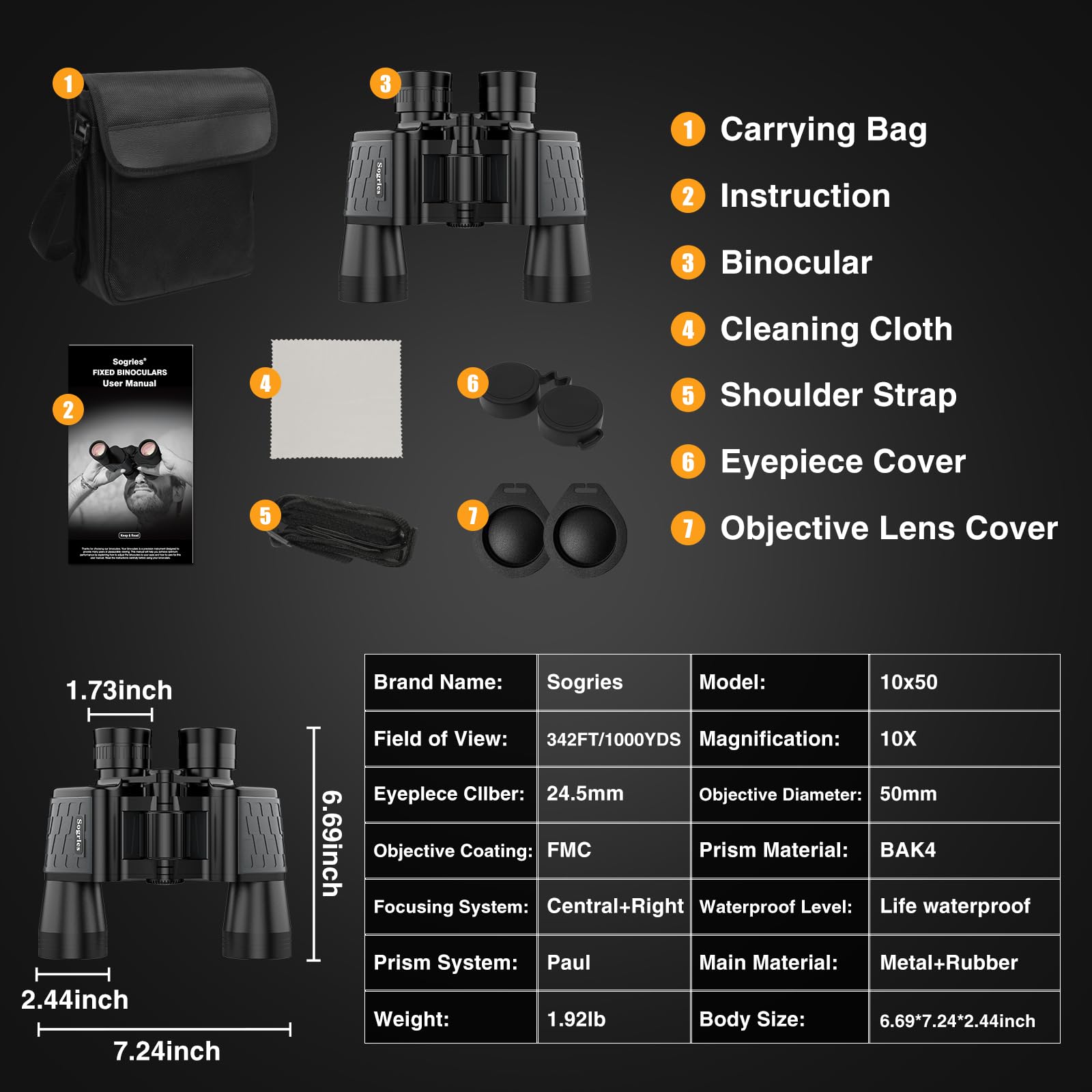 - DRY NITROGEN WATERPROOF: This Waterproof binoculars 10x50 purged and completly sealed nitrogen gas inside provides reliable performance on water resistant, fogproof and moisture proof function, Don't worry this it will let you down evan in toughest weather conditions and rugged environments;