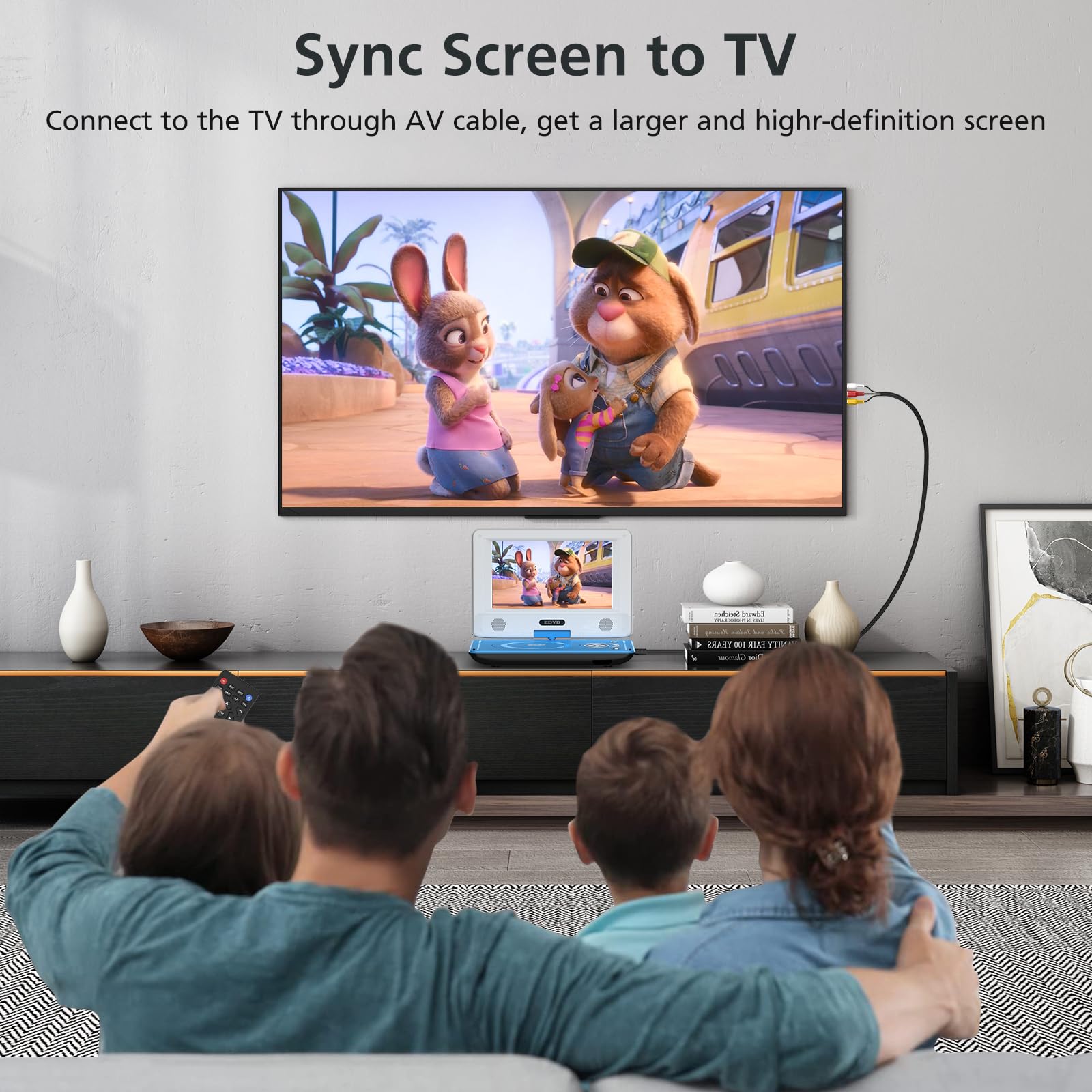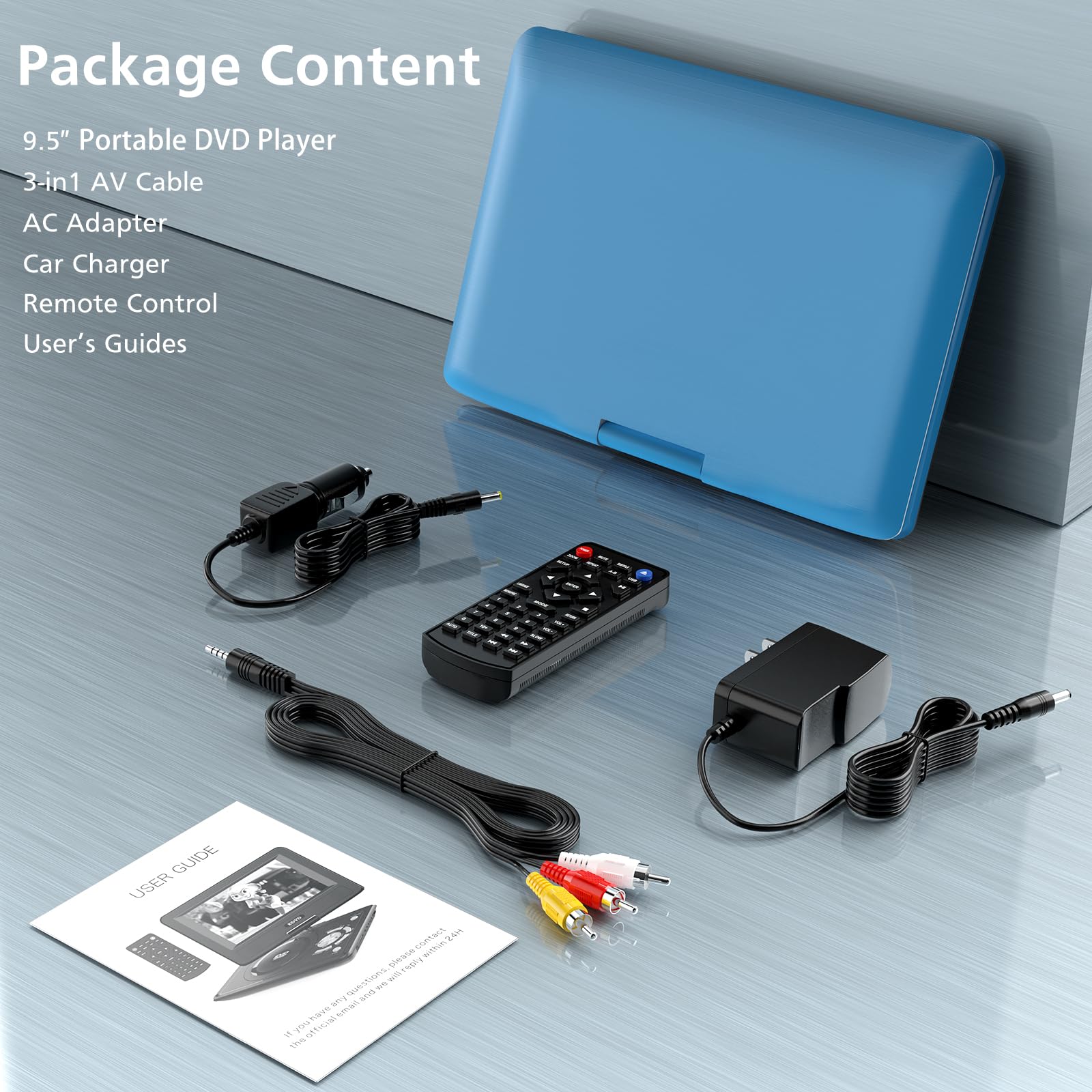 11.5" Portable DVD Player for Kids and Car, 9.5" Swivel HD Screen with 4-6 Hours Built-in Battery, Support Sync Screen to TV, Support SD Card/USB/Multiple Disc Formats (Blue)
