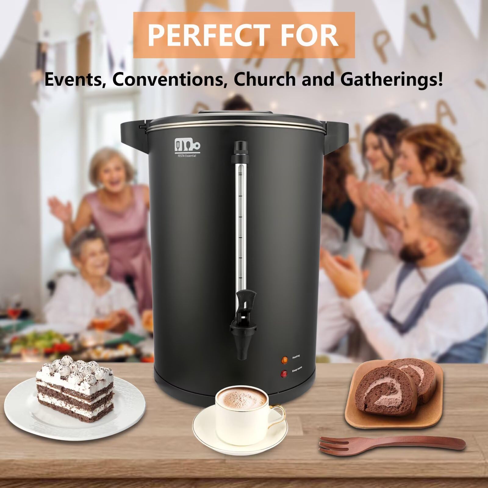 - 💎【HEAVY-DUTY DESIGN】 Made of double layer premium food grade stainless steel and a matte black spray paint surface, so it is not only a functional appliance but also a stylish addition to any setting. This large coffee maker can keep water insulated for a longer time than single wall models and protect against overheating to scald thanks to its concealed heating element system.The sturdy construction guarantees durability,making it the perfect investment for both personal and commercial use.