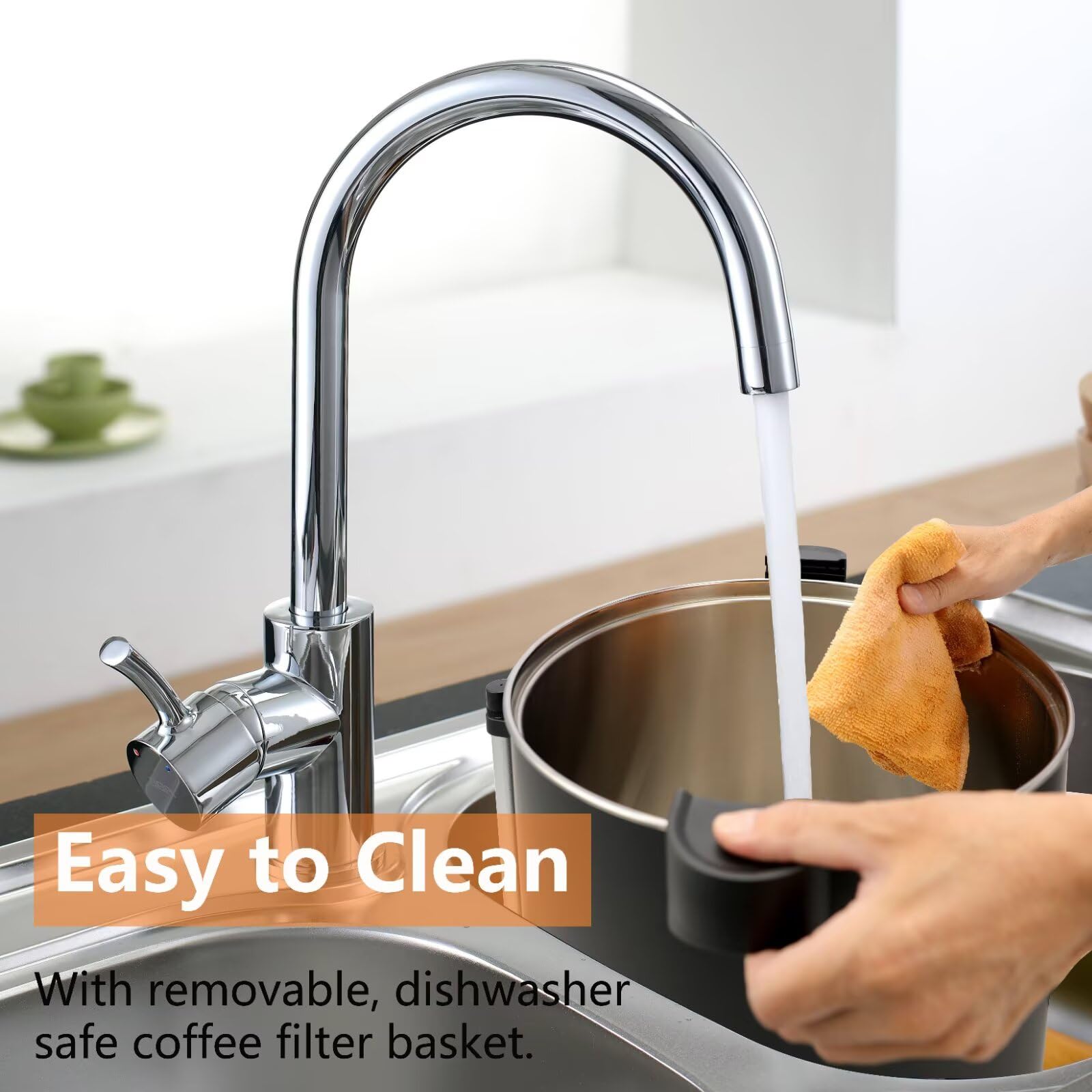 - 🍽️【EASY TO CLEAN】This coffee pot is designed with easy maintenance.Features food grade 304 S/S body and removable 304 S/S filter basket allows for hassle-free cleaning and ensures that your coffee remains free from any sediment. No paper filter needed. Simply detach the components, the brushed stainless steel interior wipes clean easily with a damp soapy cloth, rinse them under running water, and they'll be ready for the next brewing session.And the Non drip faucet can keep surfaces clean too.