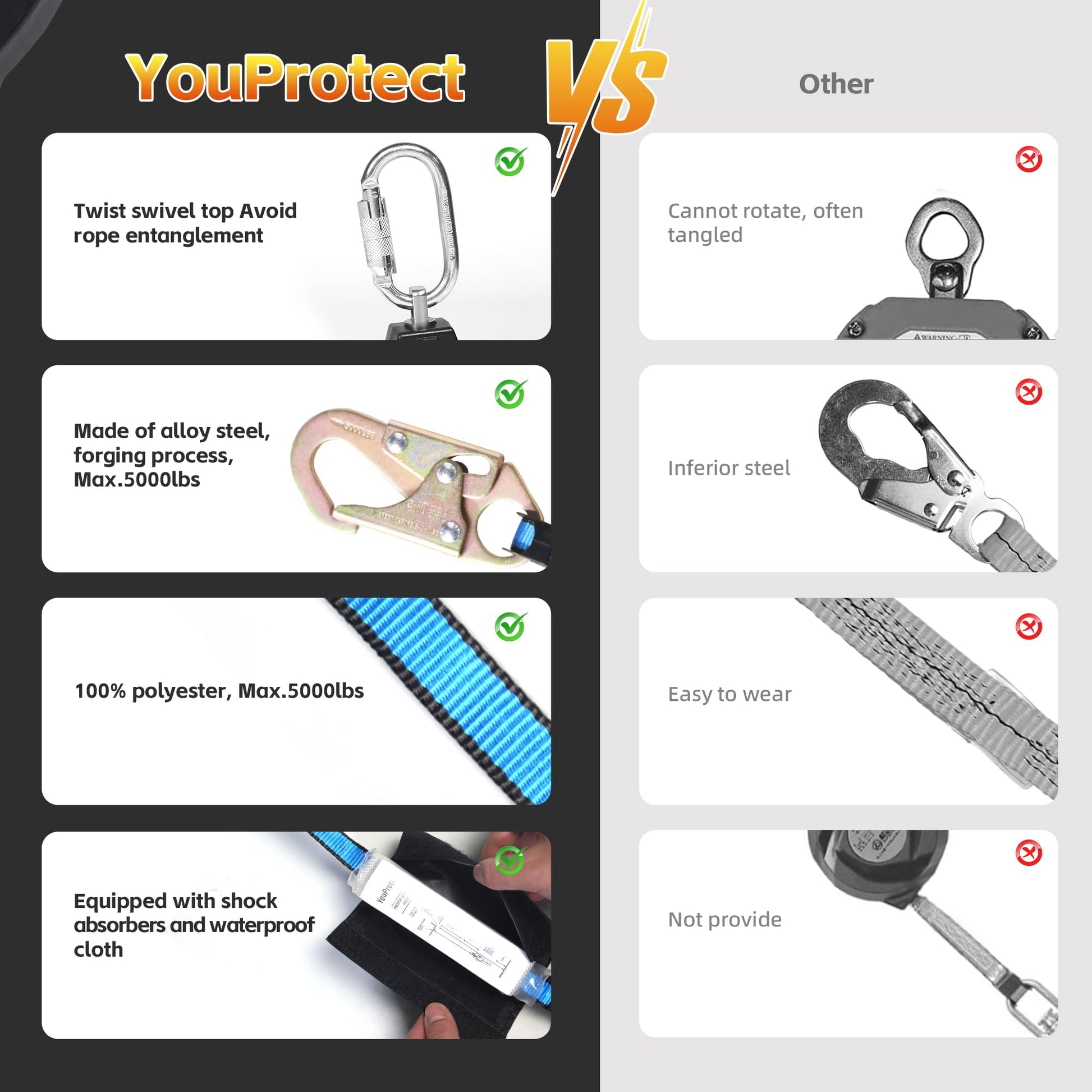 - SWIVEL TOP CONNECTOR:This retractable lifeline lanyard features a 360° swivel top connector that allows for easy movement and positioning while also minimizing the risk of tangling and twisting,making your work smoother