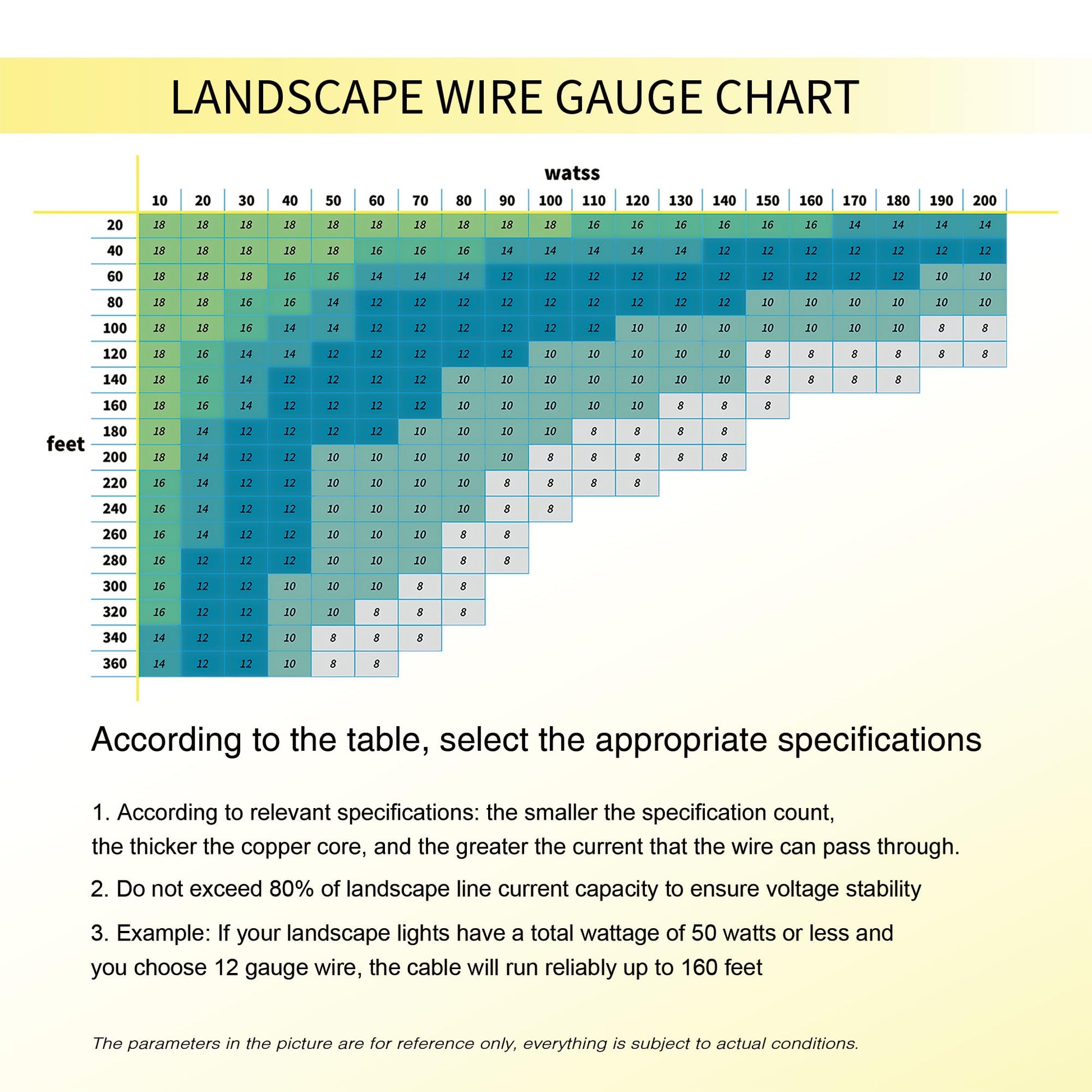 - HIGHER QUALITY: This landscape wire is temperature rated: 140 ℉. Waterproof, corrosion-resistant, not afraid of direct sunlight. Cables can be buried directly underground