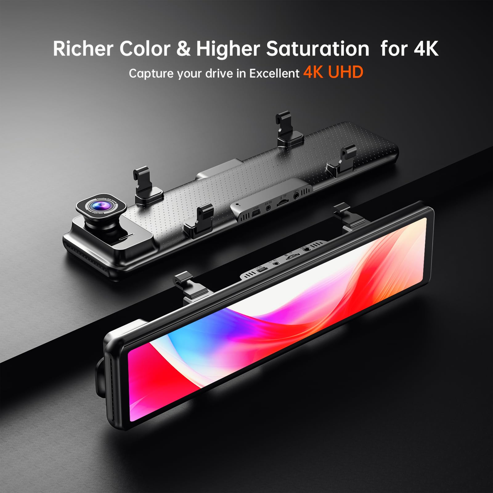 - [True 4K Ultra-HD Clarity – Capture Every Detail] Equipped with the latest Starvis image sensor, our dash cam mirror delivers UHD 4K image quality. High resolution, saturation, and accurate color reproduction ensure crystal-clear images. Dual front and rear camera recording maintains 4K without any image quality reduction by the motherboard