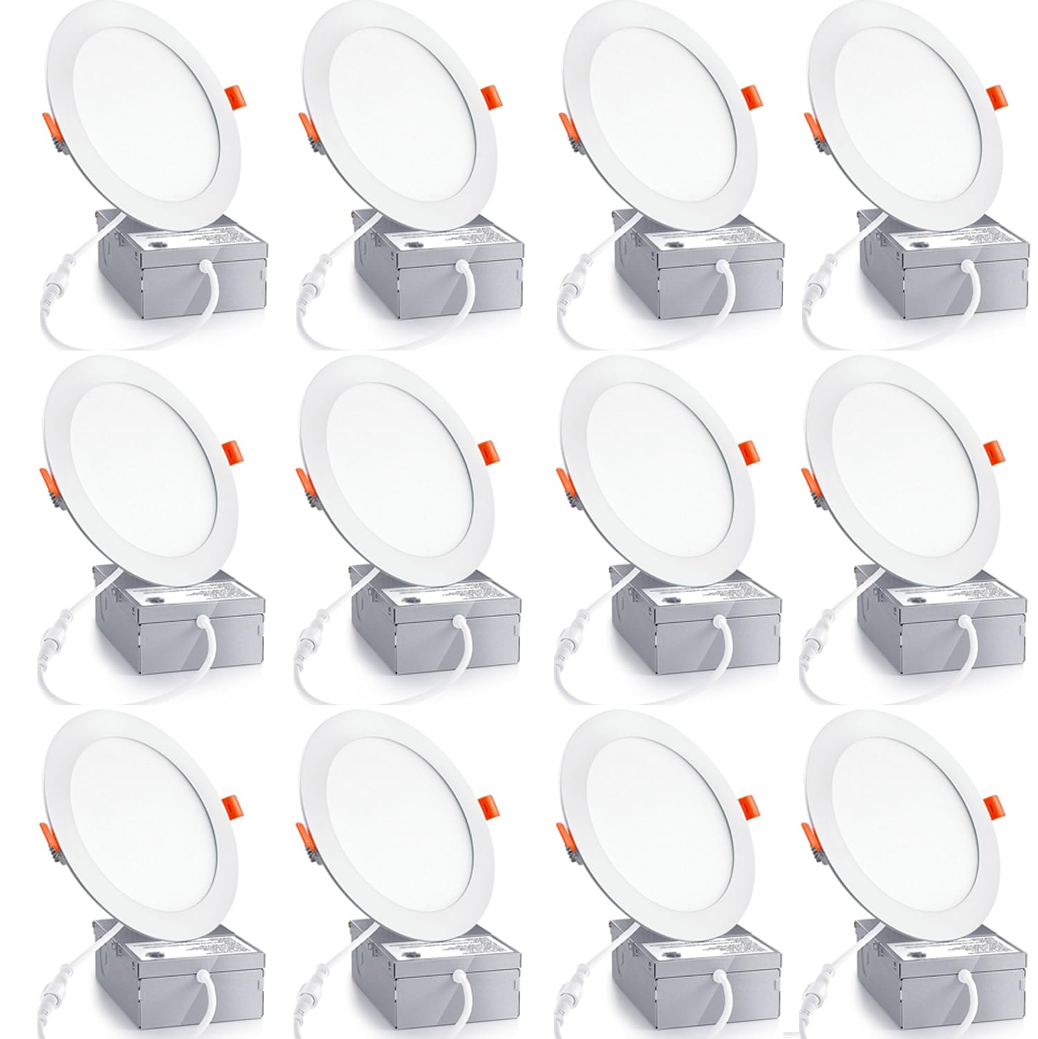 12 Pack 6 Inch Ultra-Thin LED Recessed Ceiling Light with Junction Box,6000K Daylight Deluxe Can lights,12W 110W Eqv,Canless Wafer Slim Panel Downlight,1080LM Led lights (6000K-12PACK,6 Inch)