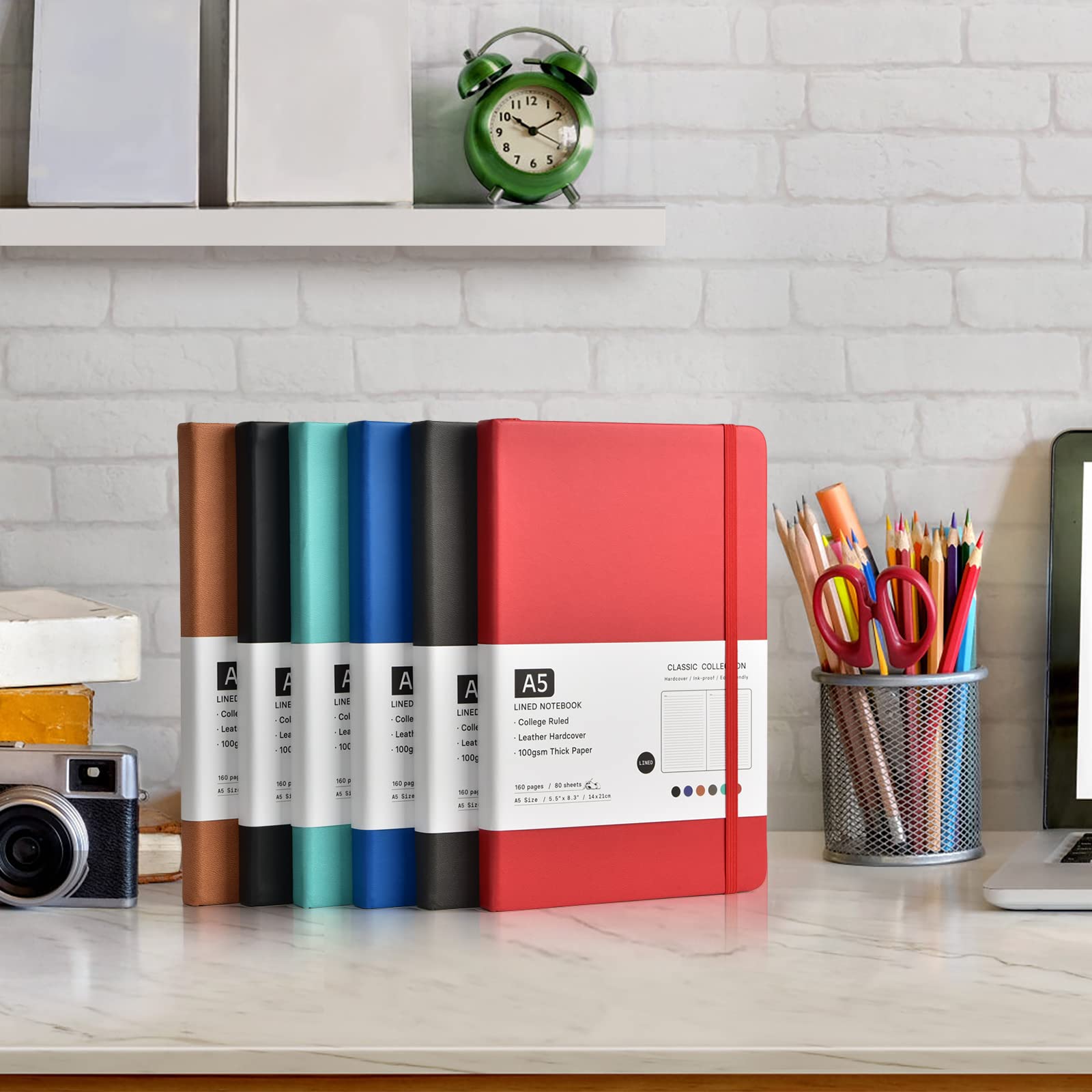 - Packaging and Size: you will receive 12 packs of hardcover journal notebooks (black/red/blue/brown/green/gray, 2 pack for each color), A5 size 8.3 X 5.5 inches, each notebook has 160 pages / 80 sheets, each sheet has 26 lines, each line spacing 0.27 inch, enough for your daily study and work needs