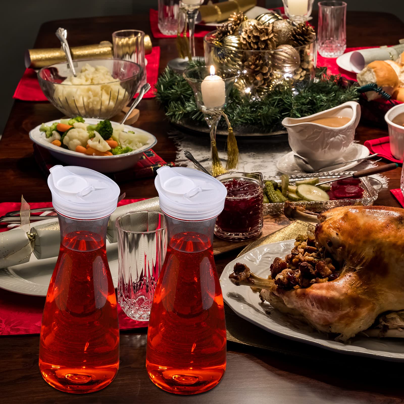 12 Packs Plastic Carafe with Lids 34 oz Clear Mimosa Juice Containers Acrylic Beverage Carafe Pitcher Drink Containers for Fridge Outdoor Iced Tea Powdered Juice Milk Coffee Party Mimosa Bar