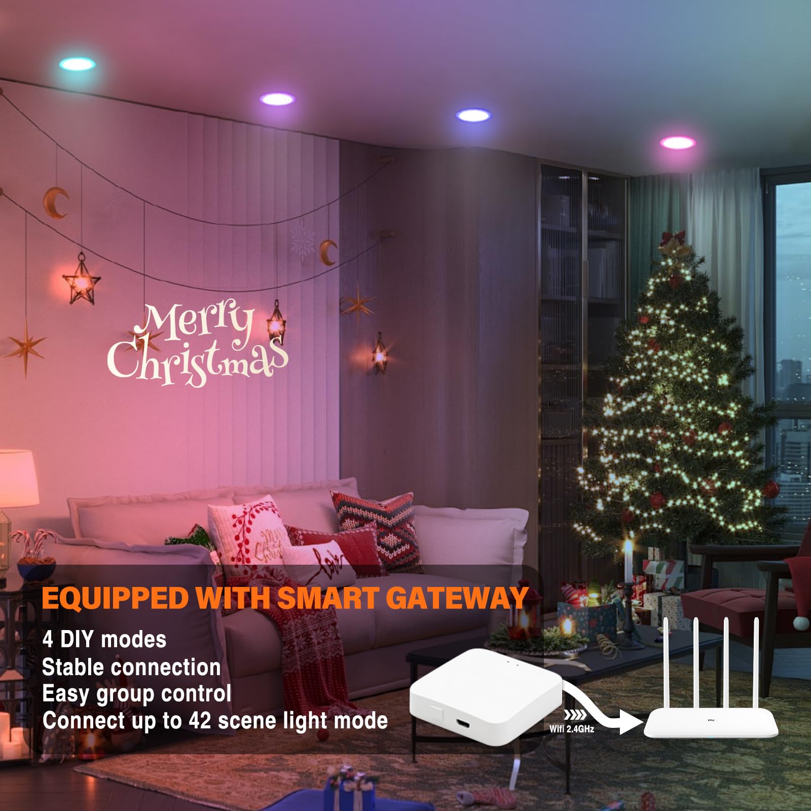 - About the Bluetooth Gateway:Smart Recessed Lighting can lights lies in its ability to ensure a fast and stable connection between devices and Wi-Fi,enabling you to remotely control ceiling light systems anytime,anywhere,even not at home.Like this, no worries about the device losing connection during use.Unlike other recessed lights on the market that lack this feature,we've innovatively broken the mold to achieve this functionality.Please note that this device only supports 2.4GHz Wi-Fi networks.