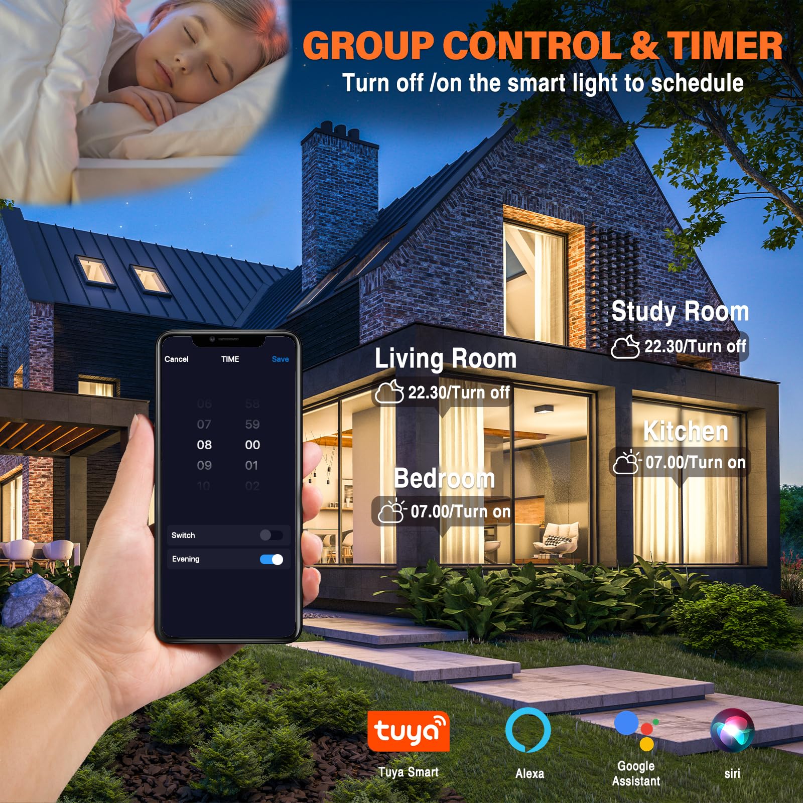 - All-in-one Group Control: The recessed downlights have multiple scene modes to manage different rooms.Use the group control function to change the colour or brightness.You can also set the timer function to choose the right light when you are resting.