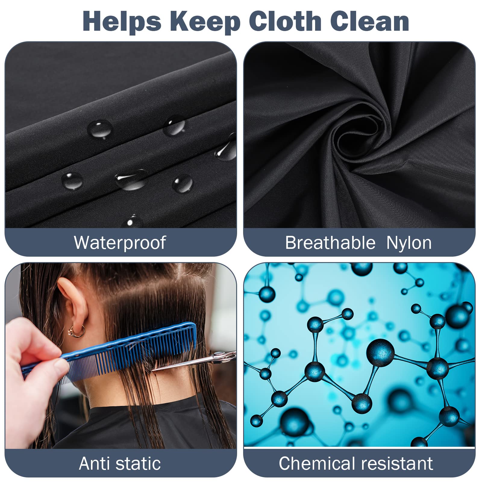- Avoid Getting Dirty: hair cutting cape is made of nylon, which is waterproof and anti static, flat and smooth, light and strong, wear resistant; When trimming, hair falls naturally without sticking on the haircut robe, can reduce the worry about hair dying, cutting, perming, shampoo mess and clients' clothes being trimmed, keeping your clothes and neck clean
