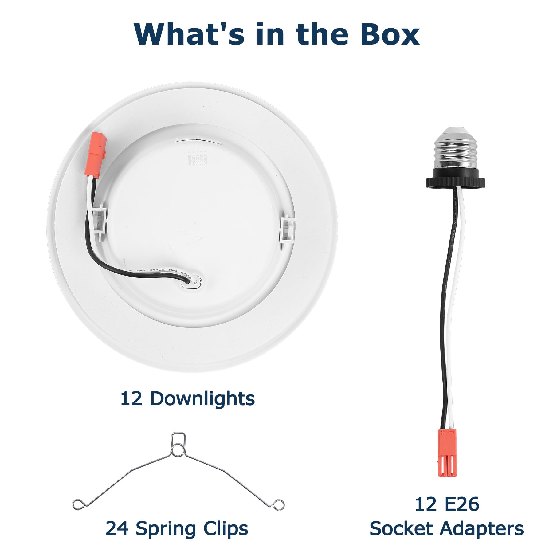 - [ Easy to Install] These 6-inch LED Recessed Lights feature a universal E26 base that makes installation as easy as installing a light bulb. You can install them without an electrician, and the quick 3-minute installation saves you time and money.