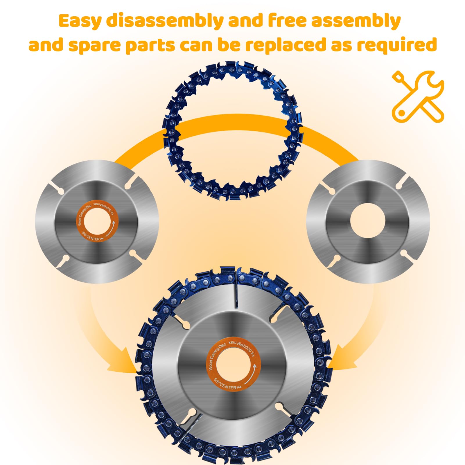 - Wood Carving Disc Set: 4Pcs wood grinding wheels (flat, oblique, arc, parallel), 1pcs 12 teeth wood shaping disc, 1pcs 22 teeth angle grinder chainsaw disc, 6pcs flap disc sanding wheels, 1pcs universal grinder wrench and 4pcs conversion rings. That is convenient combination to meet your different needs, please confirm the size before purchase. Note: Mounting nuts and grinders are not included