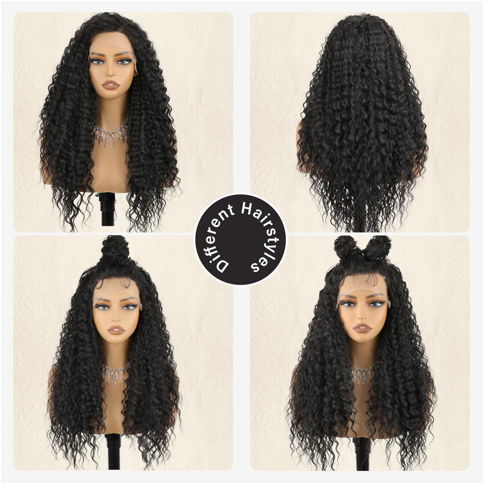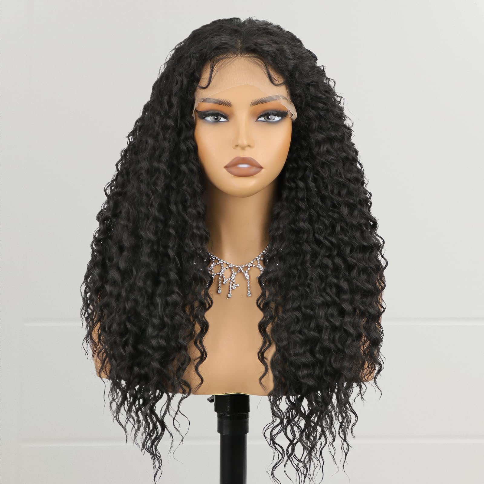 13x4 Black Synthetic Lace Front Wigs for Women 24 inch Long Curly Wavy Wig with Baby Hair Pre Plucked Heat Resistant Wig for Daily Use