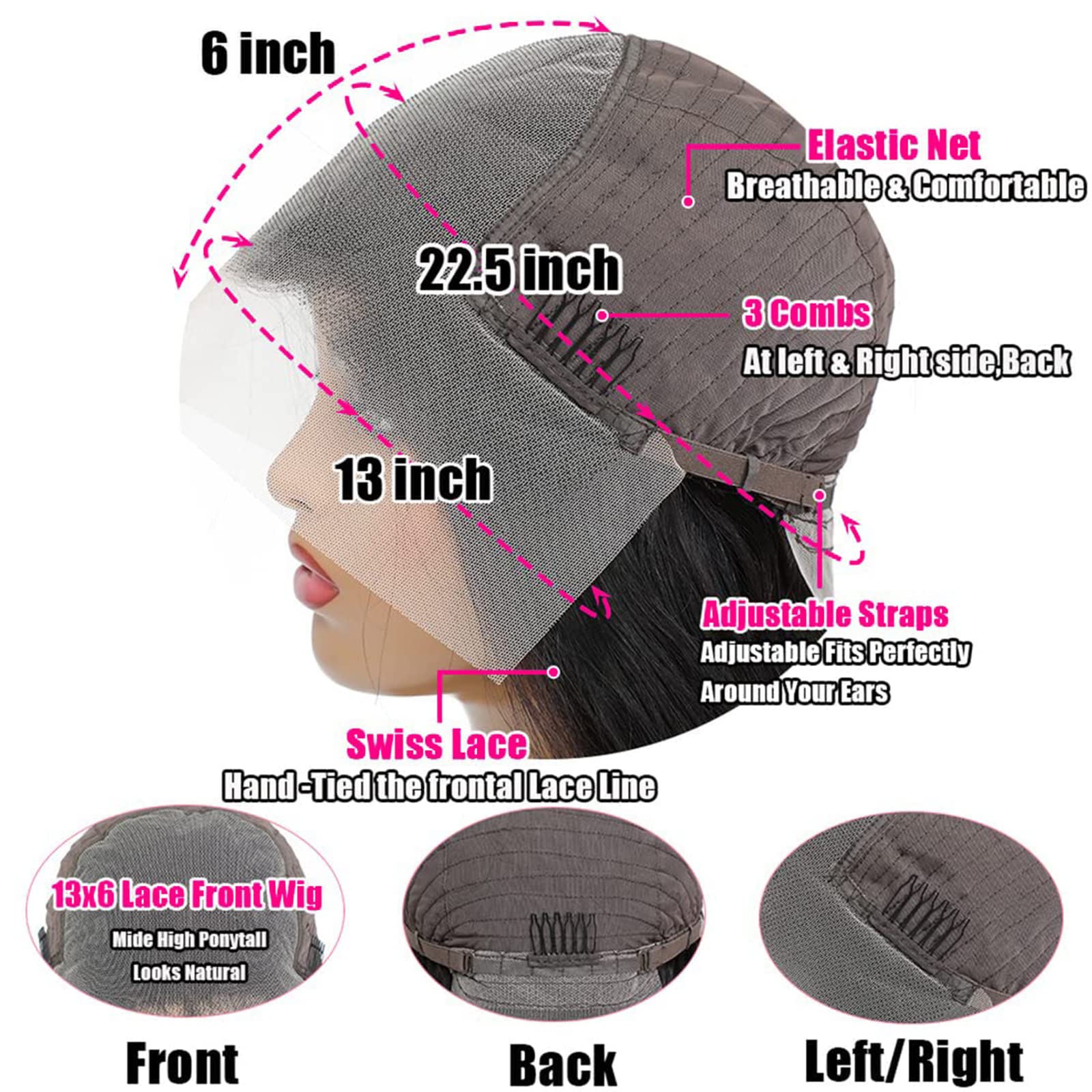 - Wig Cap Size: Body wave lace front wigs human hair pre plucked, 20-34 inches true to length, 22.5 inch medium cap with 3 combs and adjustable straps, perfectly combined with your head, more comfortable to wear.