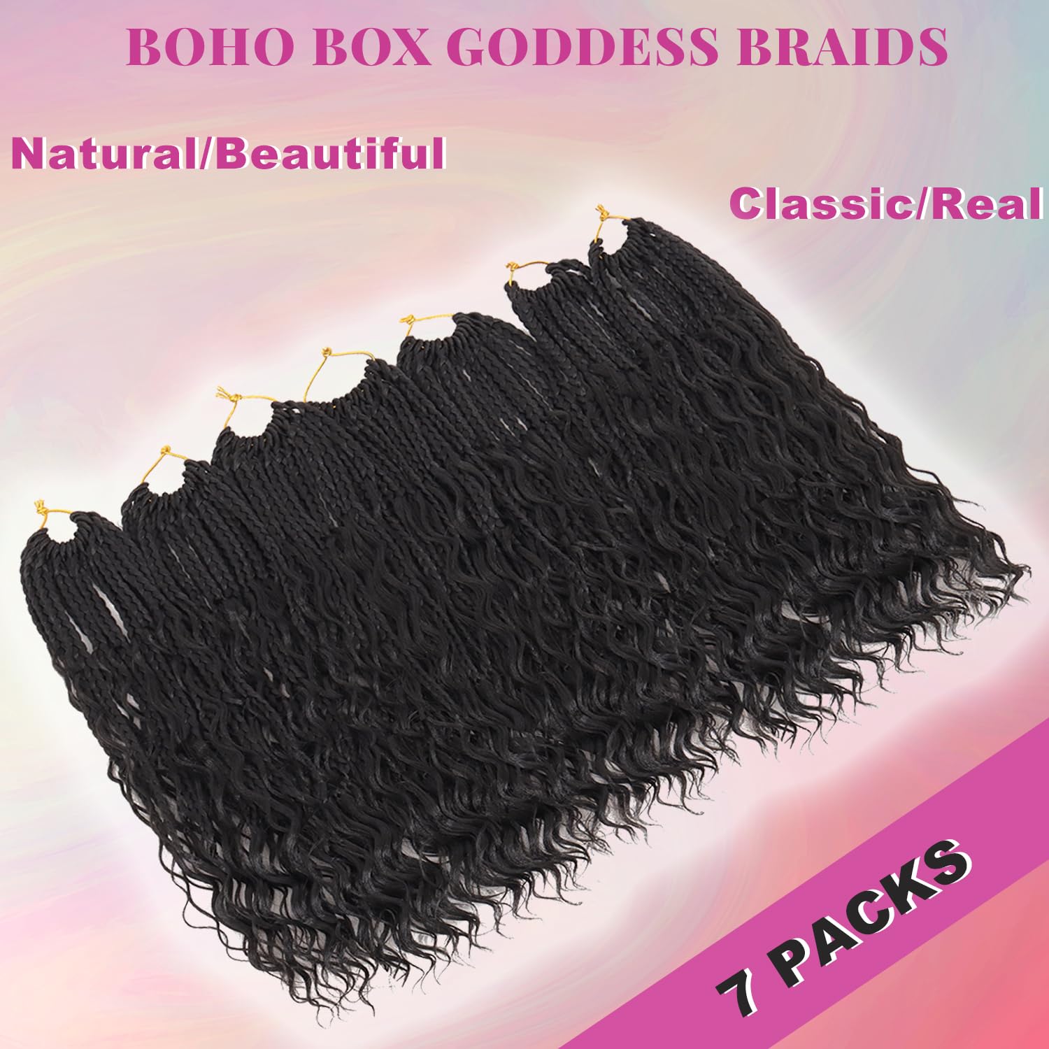 - Boho Box Braids Advantage: Yesego goddess box braids crochet hair made with high quality synthetic fiber, unlike regular curls, we choose use deep wave curls to give the braids a full and voluminous look, help you avoid of tangle dilemmas, soft touch, natural looking more like human hair