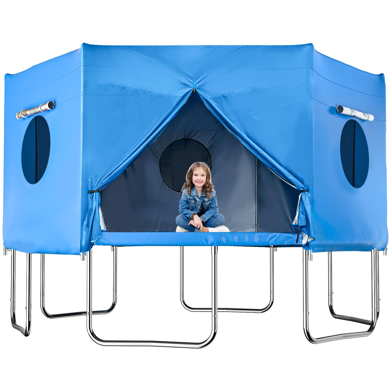 - Suitable Size:The trampoline tent fits trampolines up to 14 feet with 6 straight poles only, one-piece tent design, easy to assemble. Please check your trampoline size before you purchase the order.
