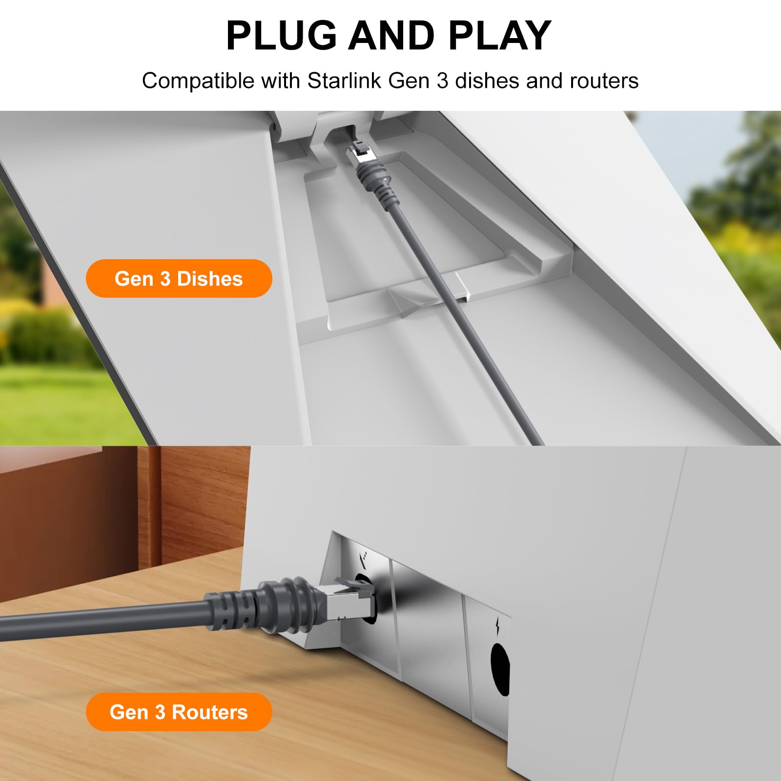 - High-speed transmission and reliable connection, the Starlink III cable delivers up to 2000Mbps data transmission speed, providing delay-free streaming media transmission. Adopted is the latest RJ45 connector, made of high quality 26AWG single core copper, durable construction, provides stable network power.
