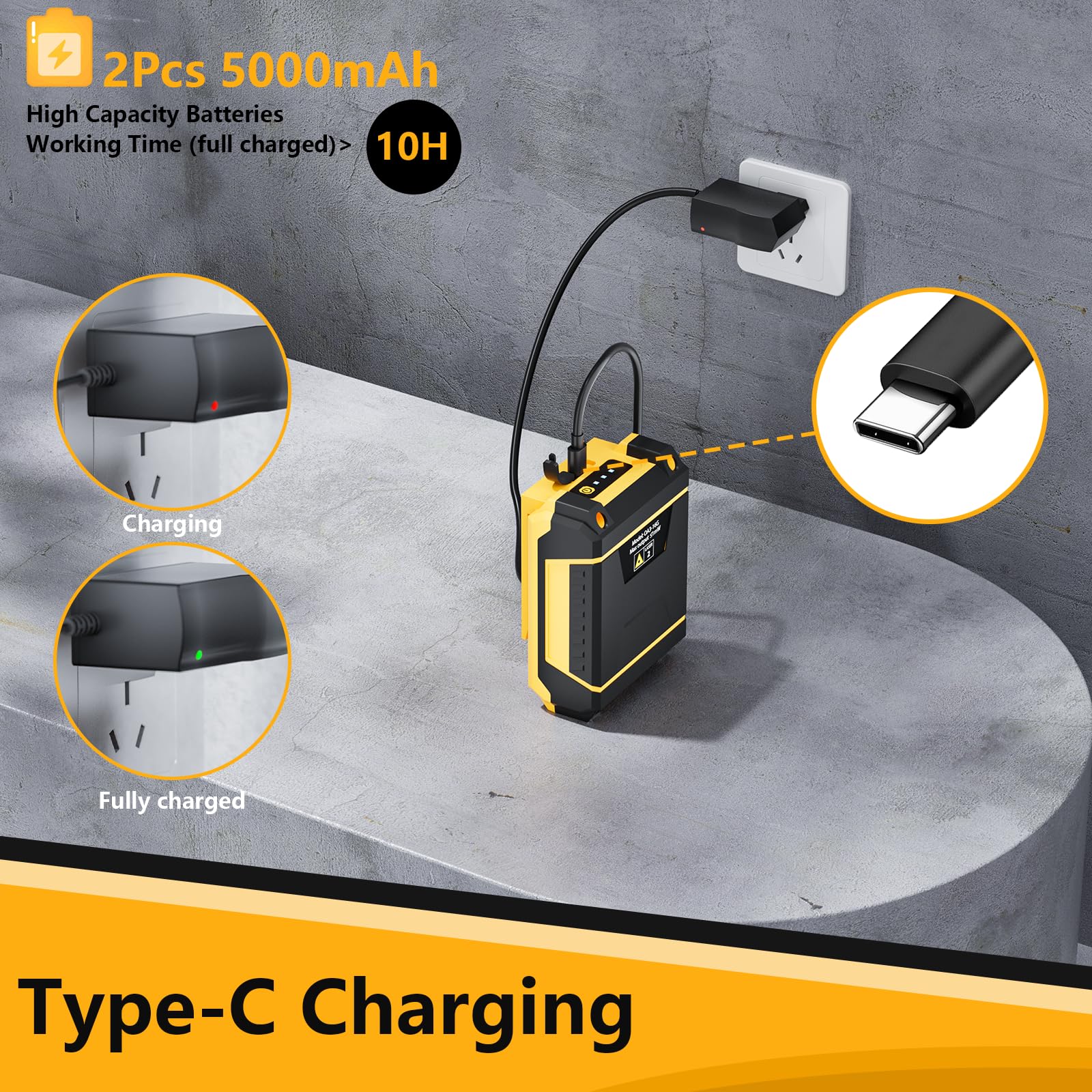 - 【2 X 2500mAh Battery】ENRIPRT 360 laser level equipped with 2 packs 2500mAh rechargeable Li-ion battery,support you working up to 10 hours with 16 lines all tun on. And with the charger included,It can be charged separately with the type-C charging port,You can use one battery and charge the other at the same time, without waiting, ensuring efficiency and continuity。
