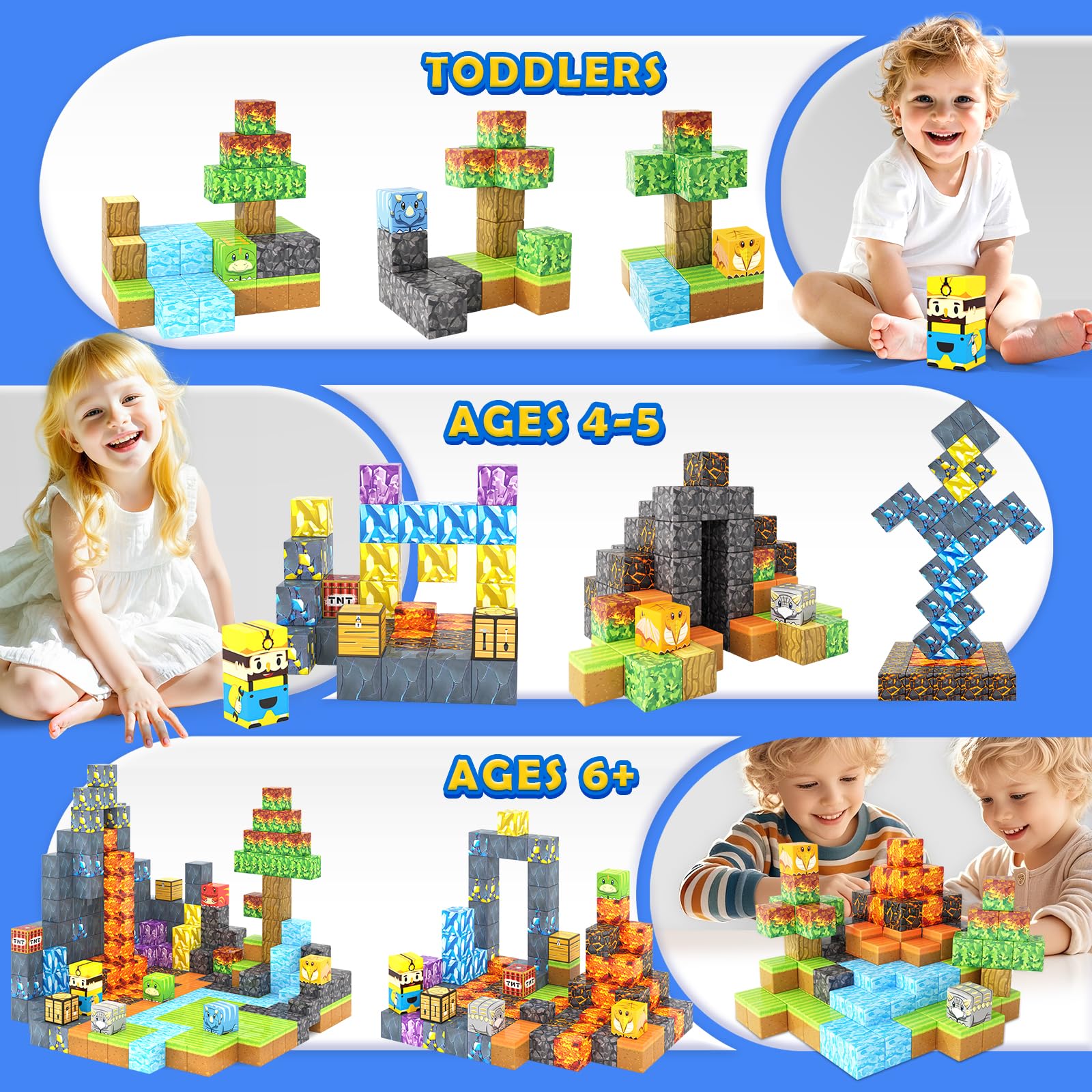 - 【SAFE & COMPATIBLE DESIGN】 Our Mine magnet world building set is kid-friendly with rounded edges and a size ideal for small hands. Made from non-toxic, eco-friendly materials, these durable magnetic blocks ensure safe and robust play. Compatible with popular brands, allowing you expand your collection of magnet toys. Perfect magnetic blocks for kids ages 4-8 to play safely and creatively.