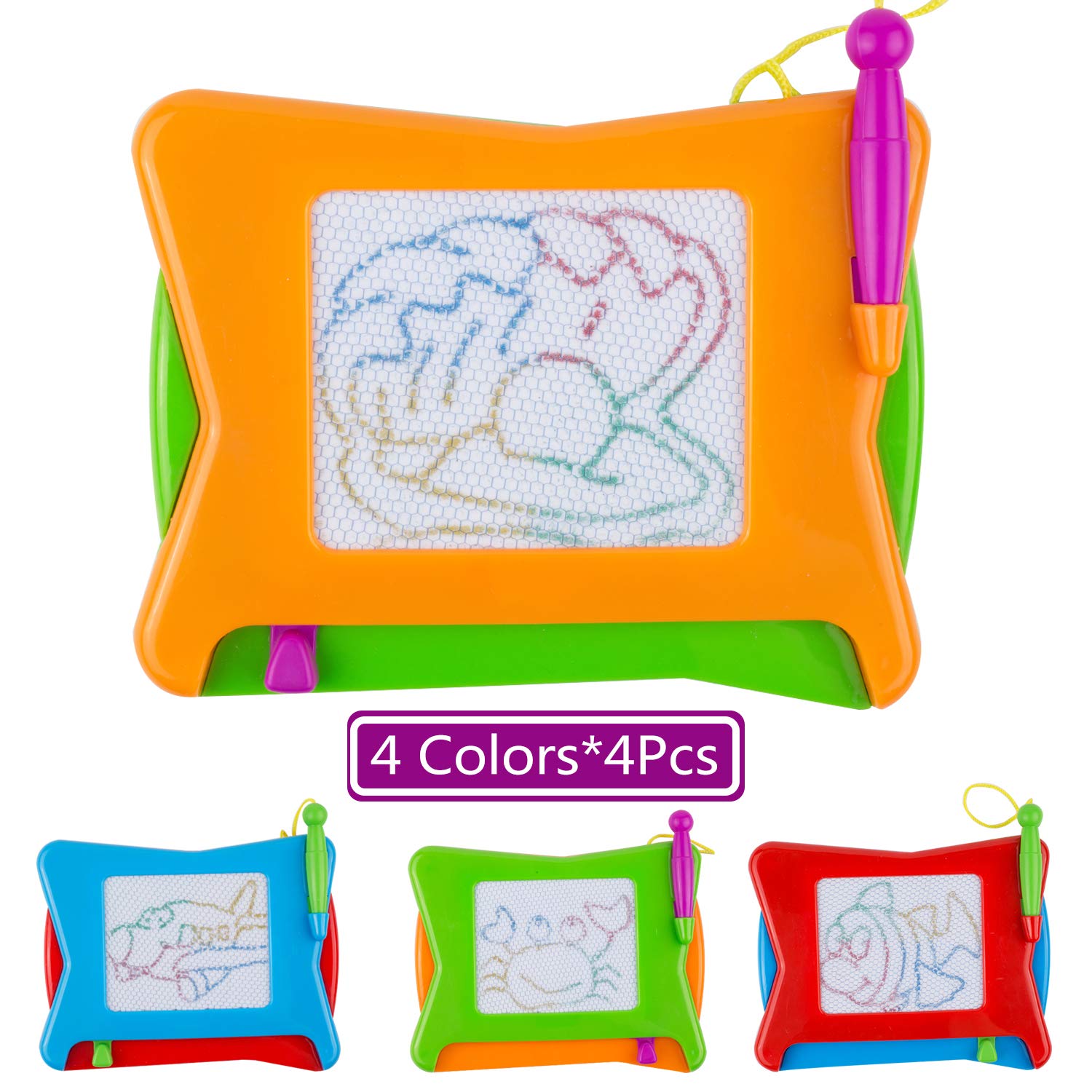 16pc Mini Magnetic Drawing Board, 4-Colors Travel Size Erasable Doodle Magna Board Toy, Small Writing Painting Sketching Pad, Educational Learning and Classroom Prizes for Toddler Boy Girl Kids Child