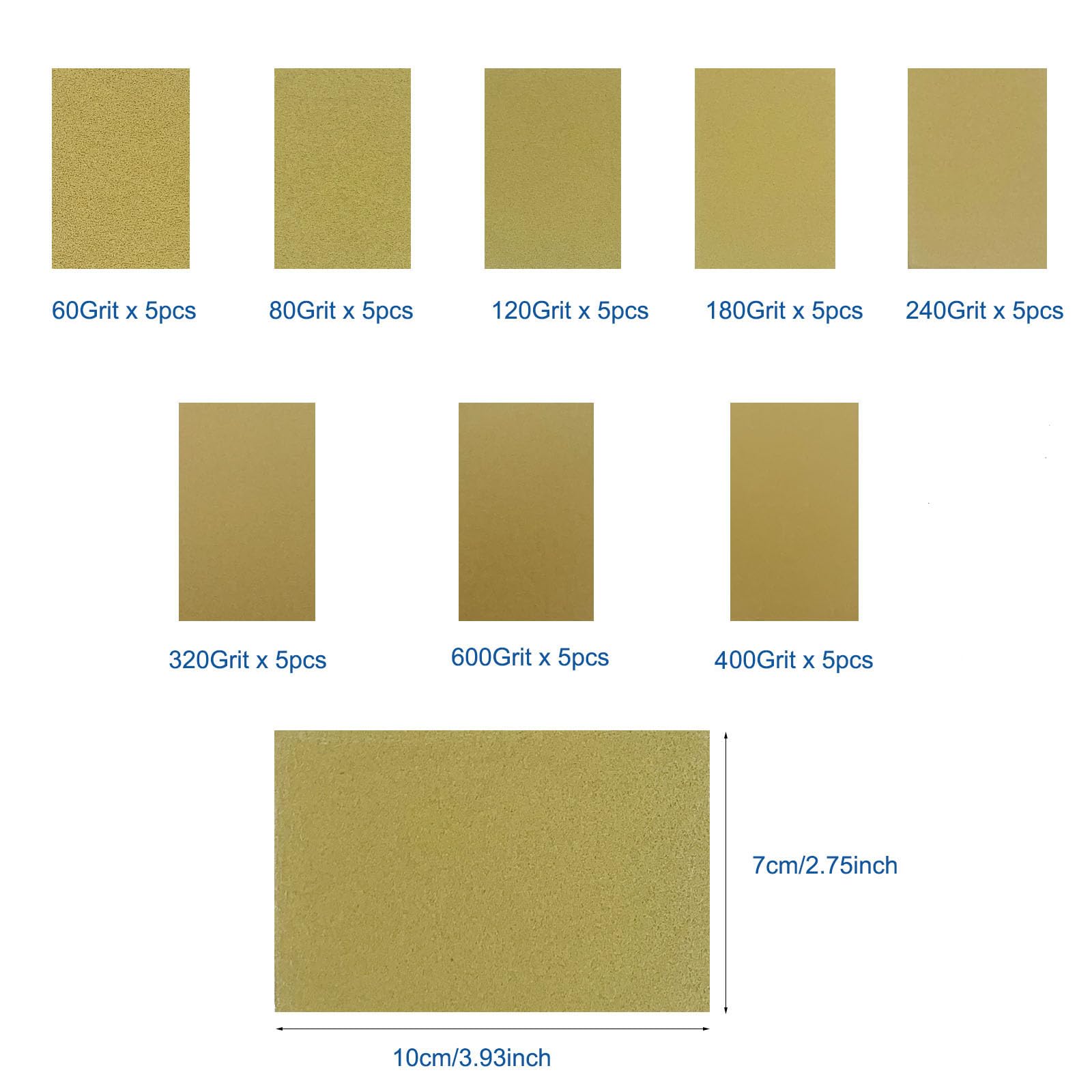 - Hand Sanding Block Set:This Sanding Block Set includes 16 sanding blocks in assorted shapes and 40pcs sandpaper sheets.The sanding block each 3.8 inches long, made from a soft, durable foam PU material. The sandpaper sheet have 8 different grits(60grit/80grit/120grit/18grit/240grit/320grit/600grit/400grit)and each grit 5pcs.The pad's hook & loop enable quick and secure sandpaper attachment and removal for optimal sanding disc life.