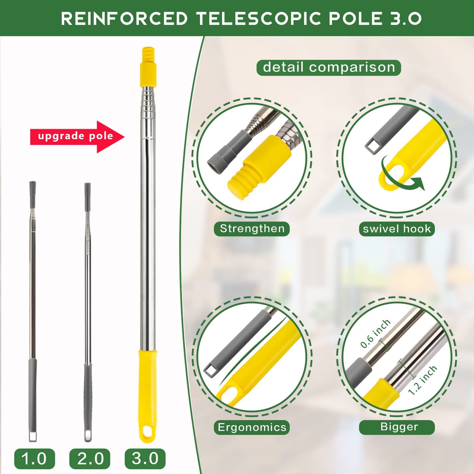 - MULTI-FUNCTIONAL TELESCOPIC EXTENSION POLE: Crafted from sturdy 3.0 stainless steel, this pole is rust-proof, lightweight, and adjustable. It’s stronger and more stable than aluminum poles, with no wobbling or spinning