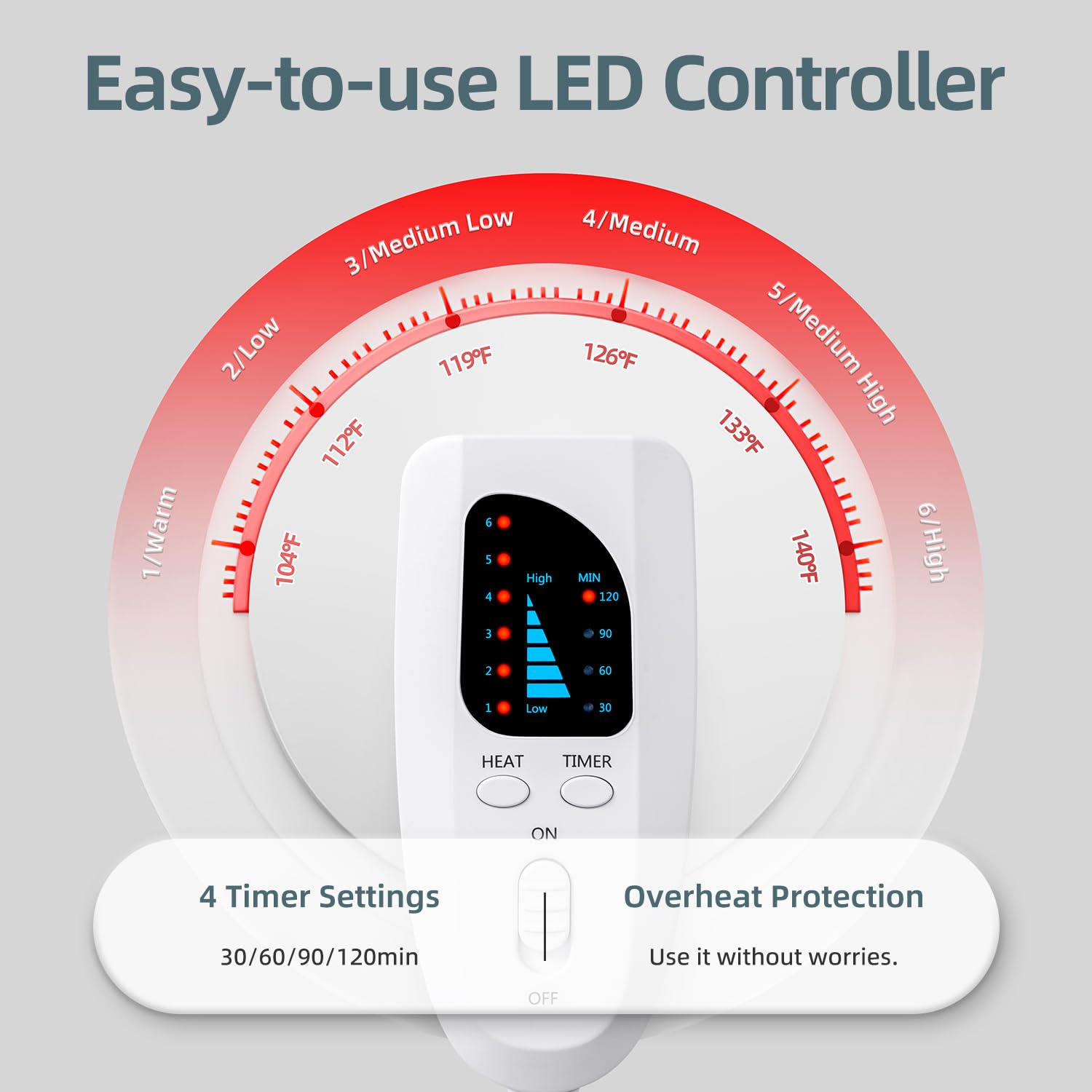 - Muscle Relaxation & Pain Relief: XXXL 17"x33" Heating Pad that aims to promote muscle relaxation, alleviate stress and pain, specifically designed to target menstrual or period cramp, including 1-6 temperature levels(104°F-140°F) and 1-4 timer settings(30-120mins). If you prefer a Moist Heat Therapy, simply spray a fine mist onto the Heating Pad. Furthermore, the Heating Pad comes with a 7 feet power cord, ensuring convenient usage anywhere there is an available outlet