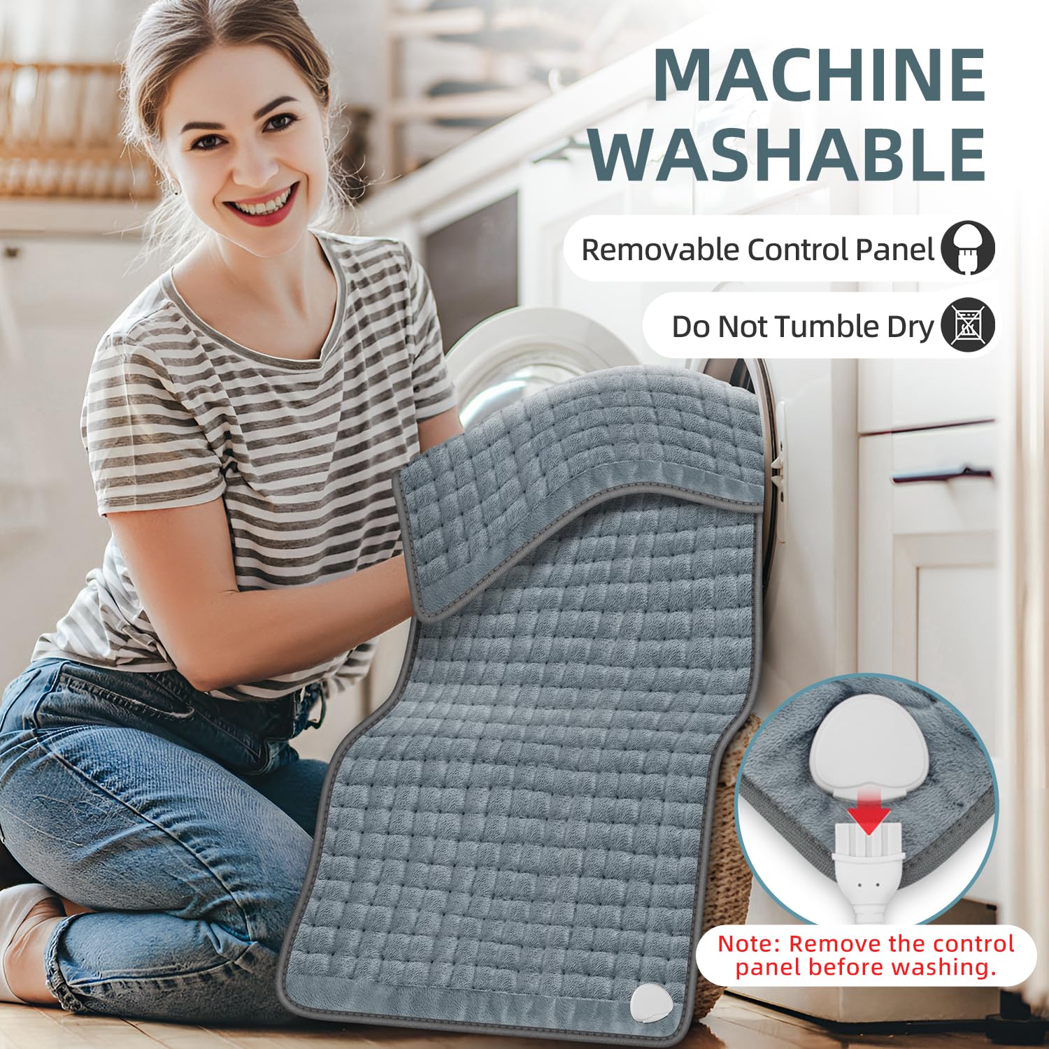 - Heating Pad for Back Pain Relief: TATOWN Electric Heating Pad provides a continuous and consistent supply of warmth to the targeted area. This reliable Heating Pad is specifically designed to effectively address back pain, and encourage a comforting sensation of intense cramps. It is particularly advantageous for soothing sore muscles in different parts of the body, including the neck, shoulders, back, abdomen, knees, and legs. The Heating Pad for Cramps is easily machine washable